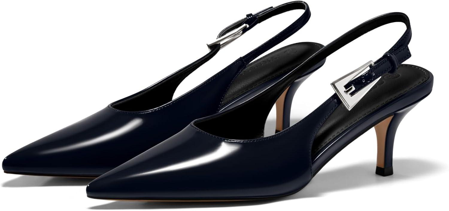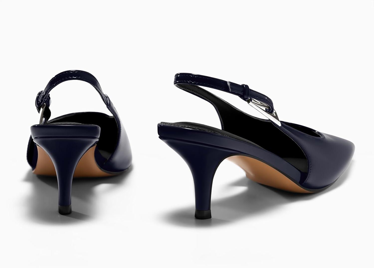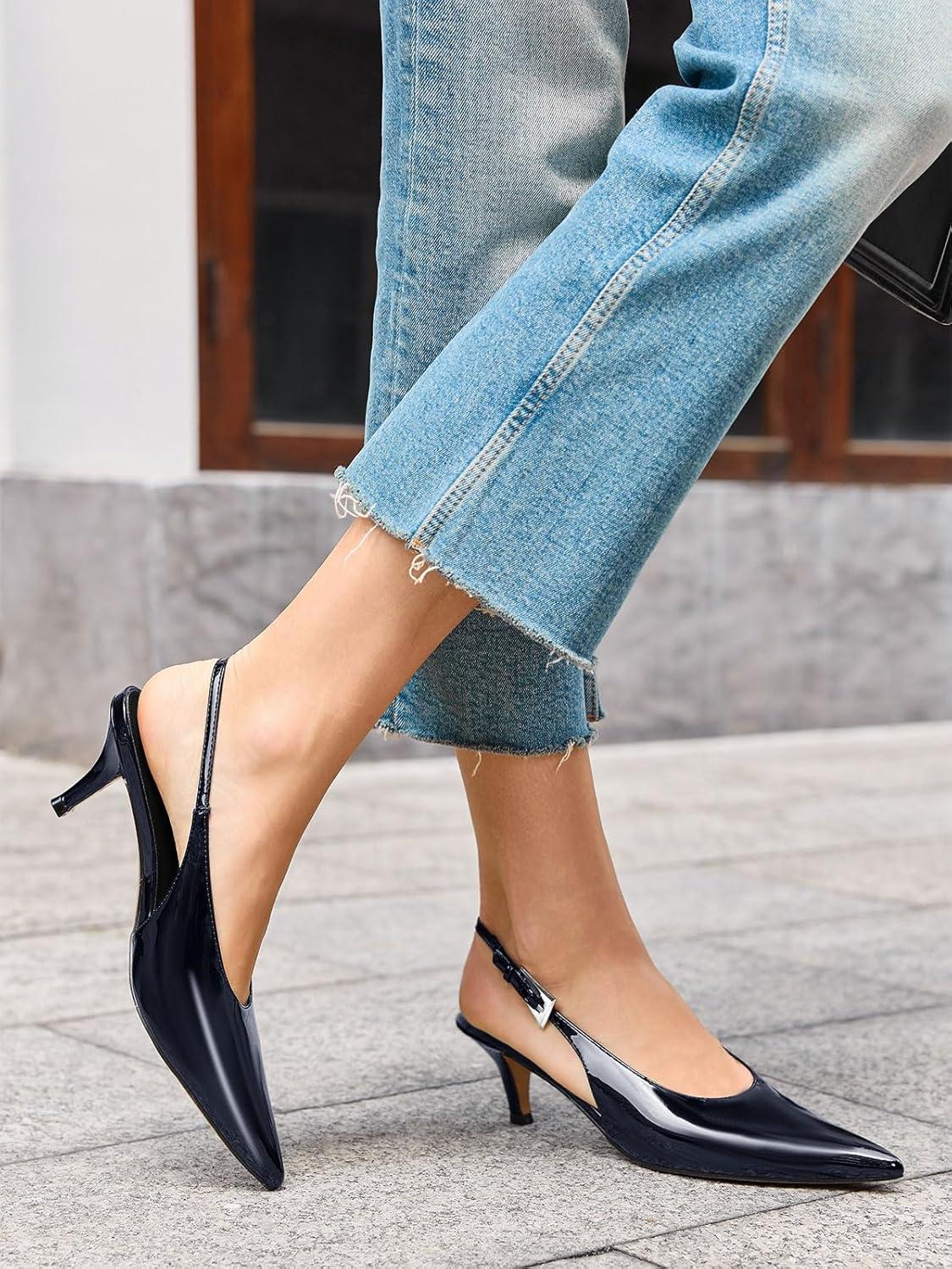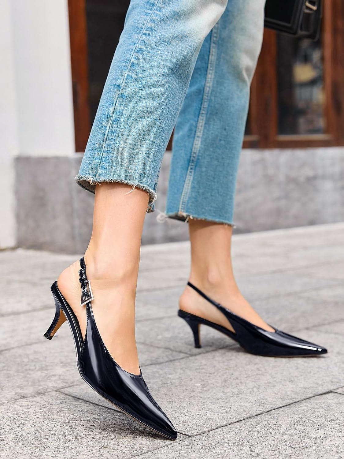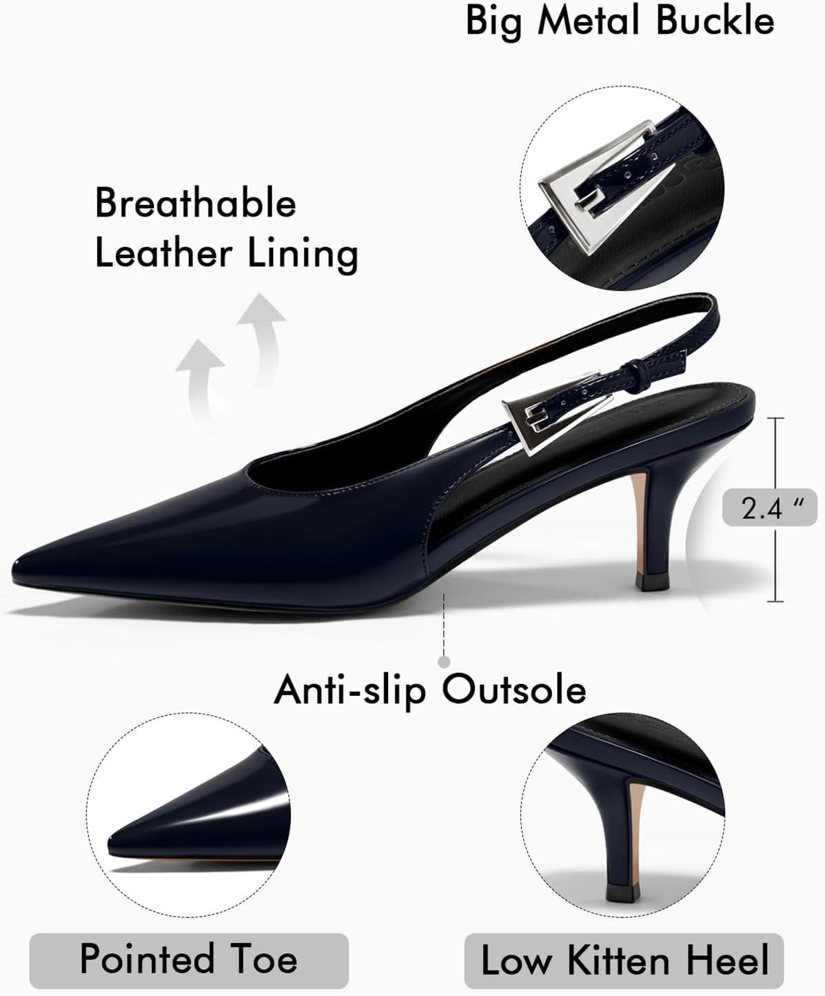Coutgo Womens Slingback Heels Kitten Low Heel Dress Shoes Closed Pointed Toe Buckle Pumps Work Wedding Shoes(Navy)