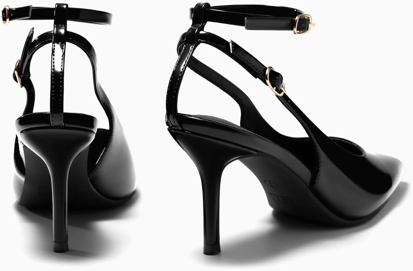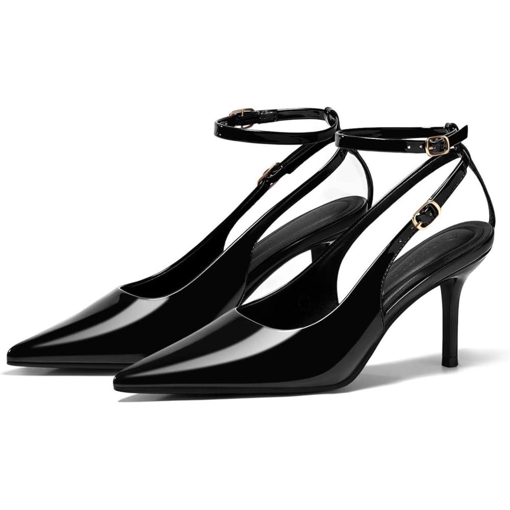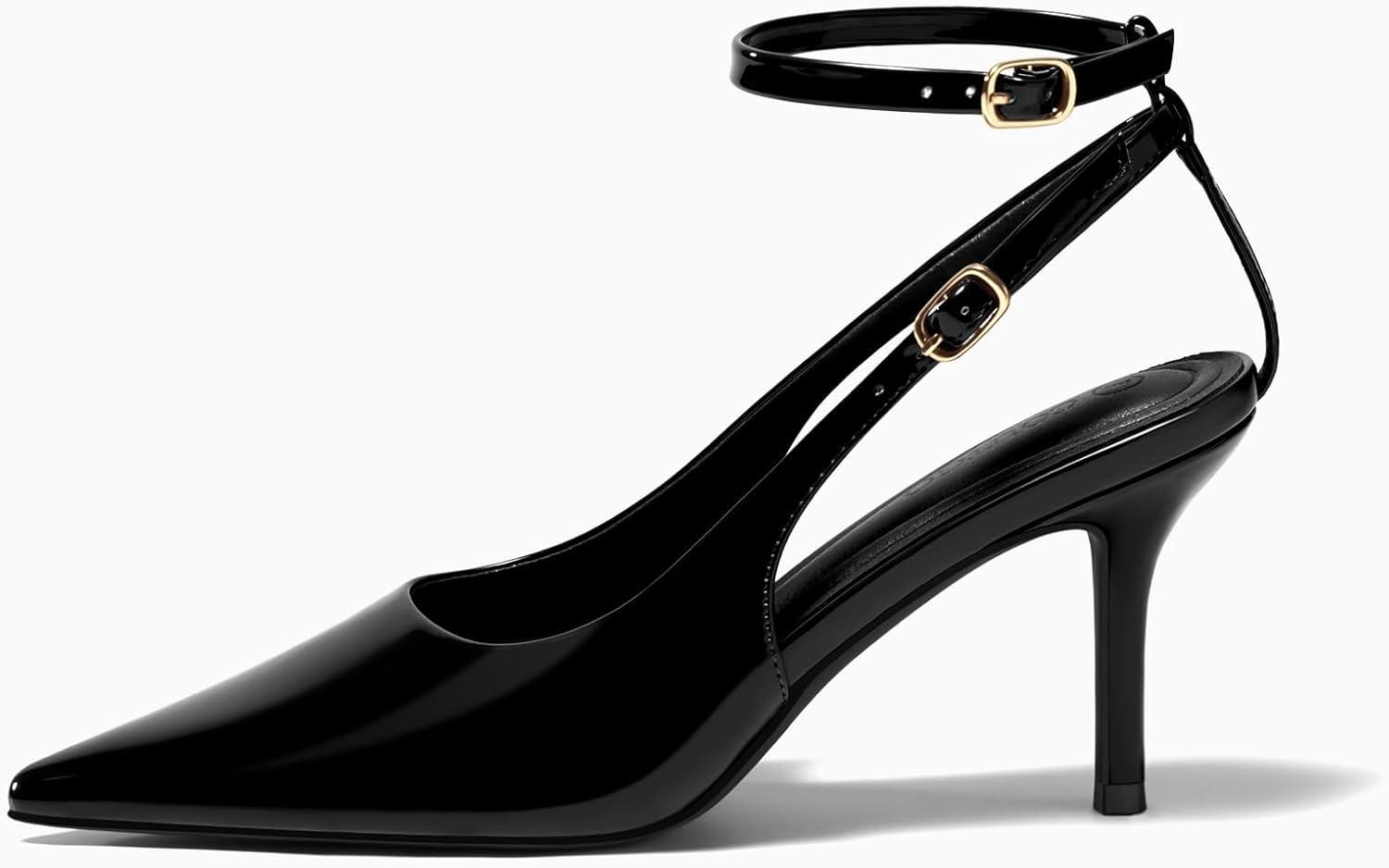 Coutgo Womens Slingback High Heels Closed Pointed Toe Pumps Ankle Strap Work Dress Shoes(Black)