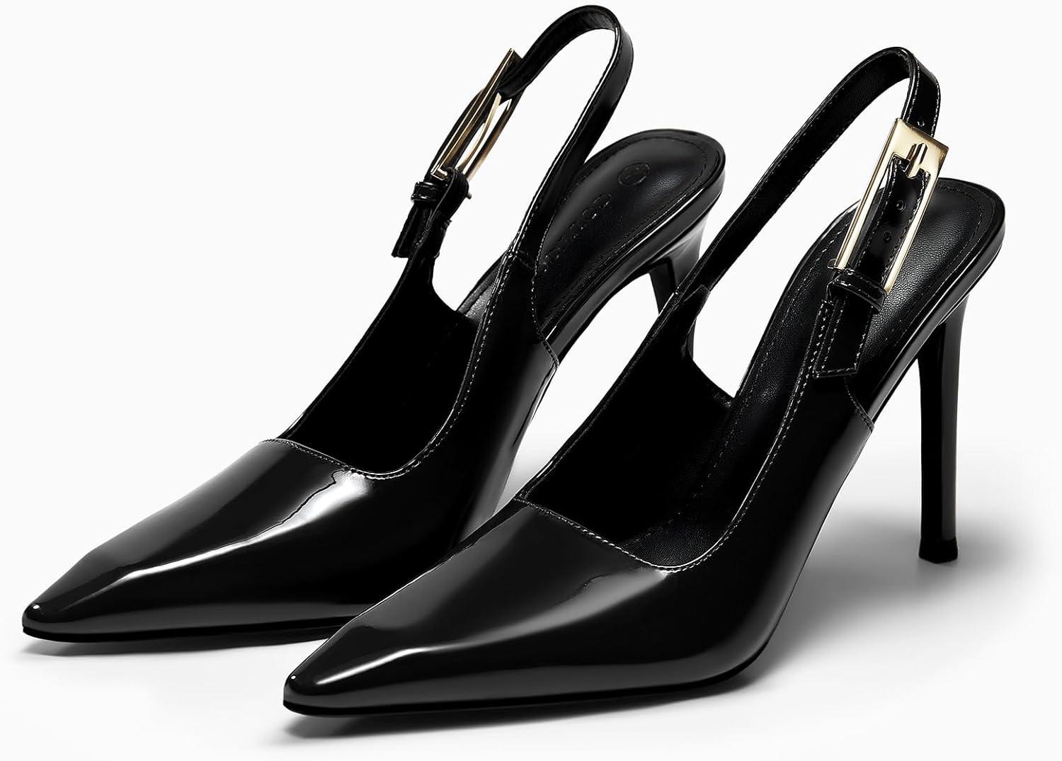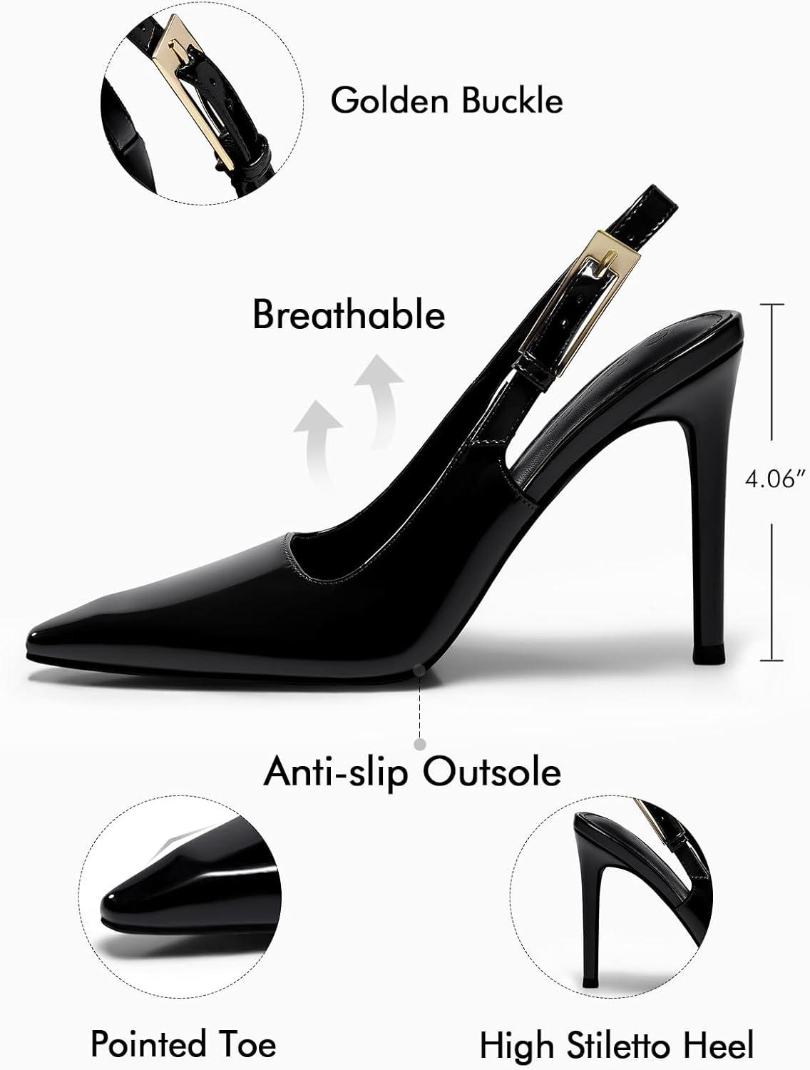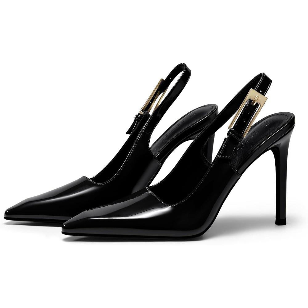 Coutgo Women’s Slingback High Heels Pointed Toe Stilettos Metal Buckle Dress Party Pump Shoes(Black)