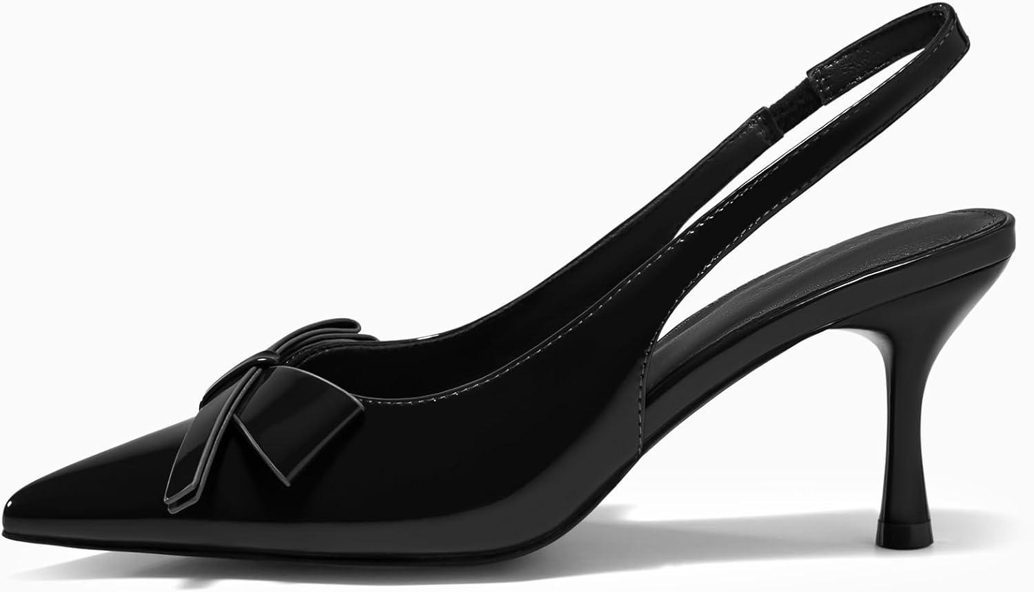 Coutgo Womens Slingback Kitten Heels Bow Closed Pointed Toe Pumps Slip on Office Work Dress Shoes(Black)
