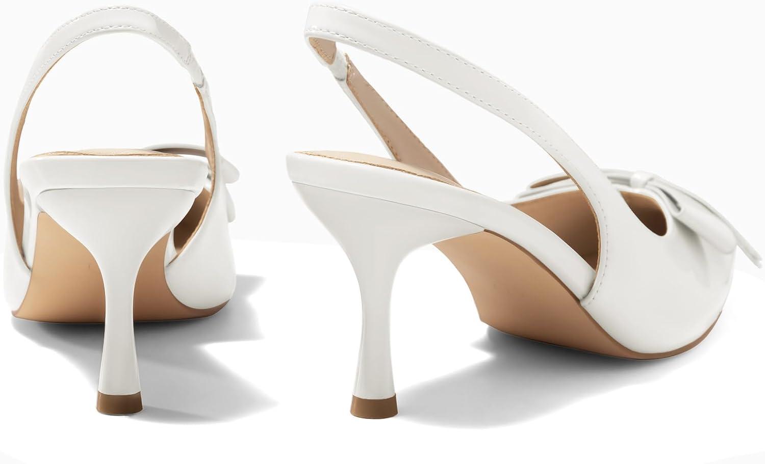 Coutgo Womens Slingback Kitten Heels Bow Closed Pointed Toe Pumps Slip on Office Work Dress Shoes(White)