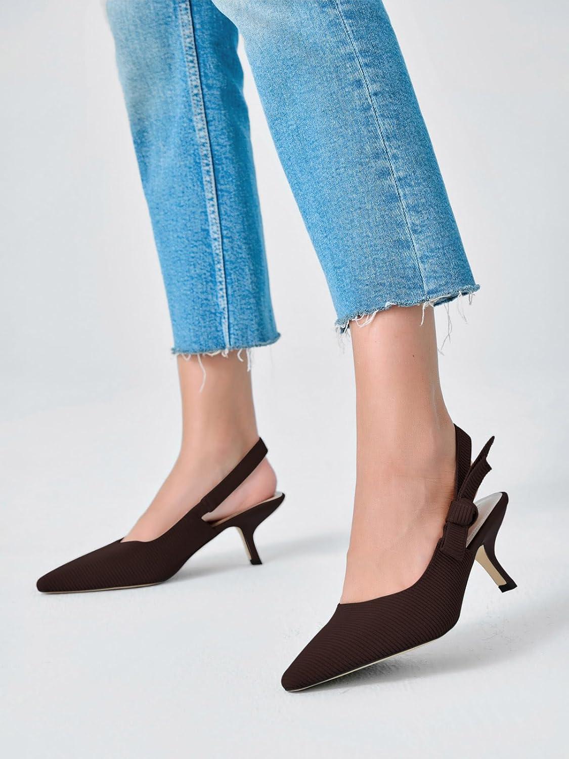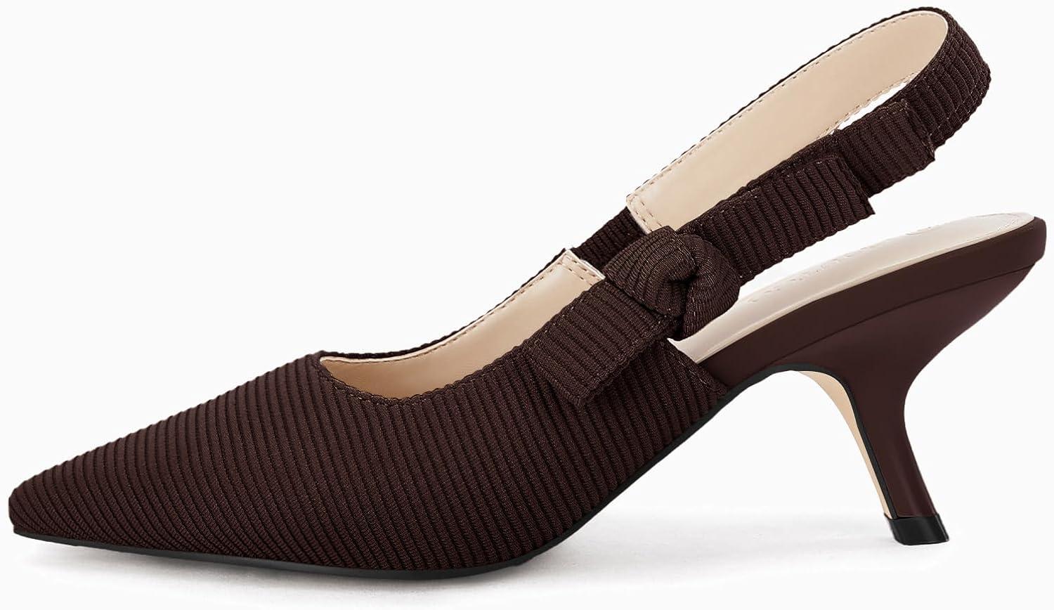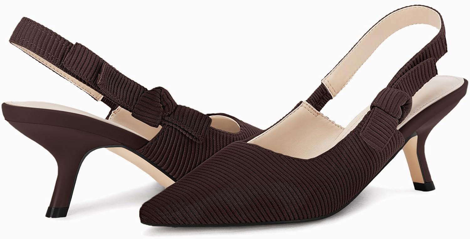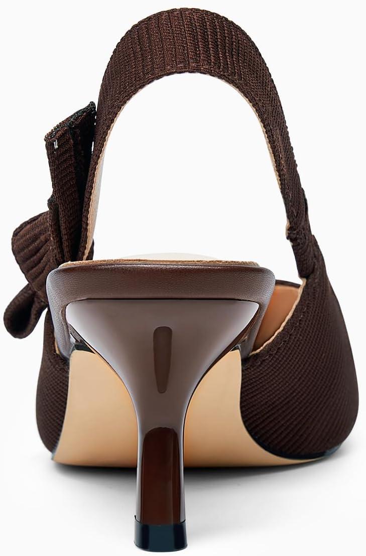 Coutgo Womens Slingback Kitten Heels Closed Pointed Toe Bowknot Knitted Slip On Work Pumps Dress Shoes(Coffee)