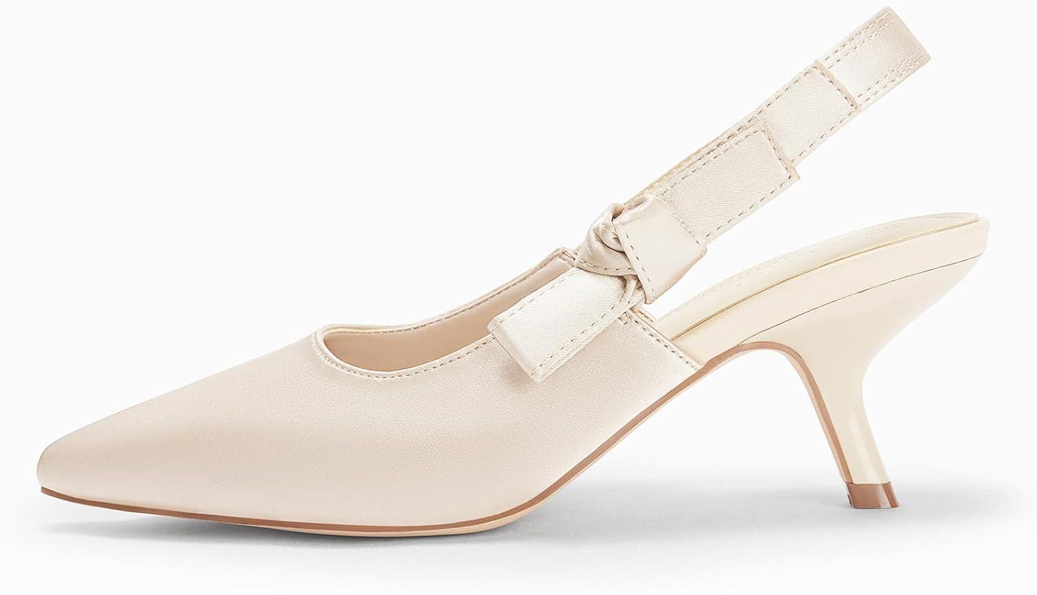 Coutgo Womens Slingback Kitten Heels Closed Pointed Toe Bowknot Knitted Slip On Work Pumps Dress Shoes(Nude Satin)
