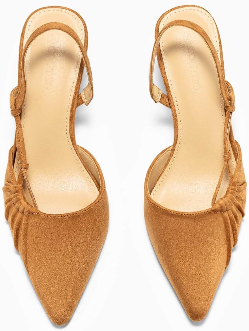Be the first to review “Coutgo Womens Slingback Kitten Heels Closed Pointed Toe Pumps D’Orsay Wedding Party Dress Shoes(Light Brown)”