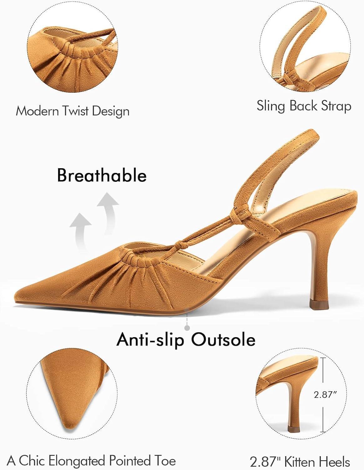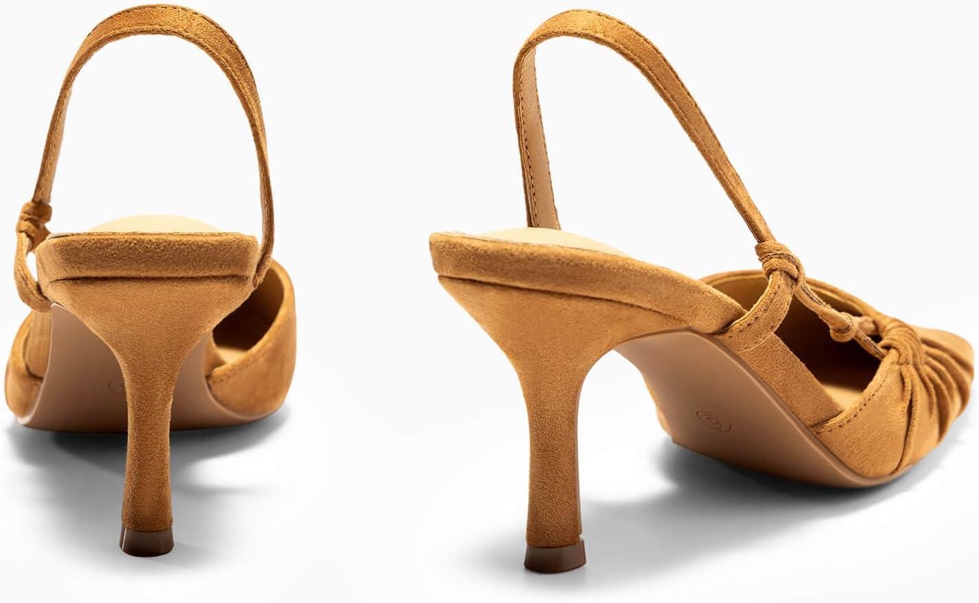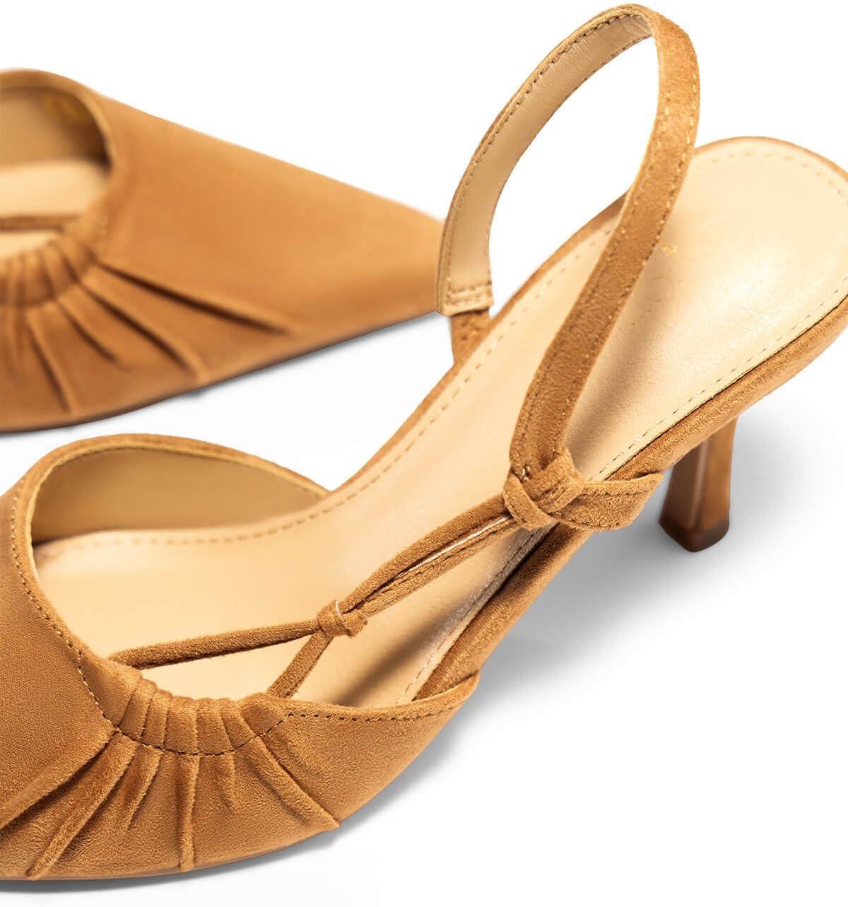 Coutgo Womens Slingback Kitten Heels Closed Pointed Toe Pumps D’Orsay Wedding Party Dress Shoes(Light Brown)