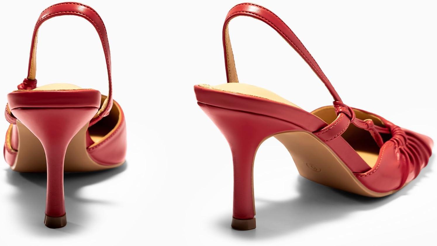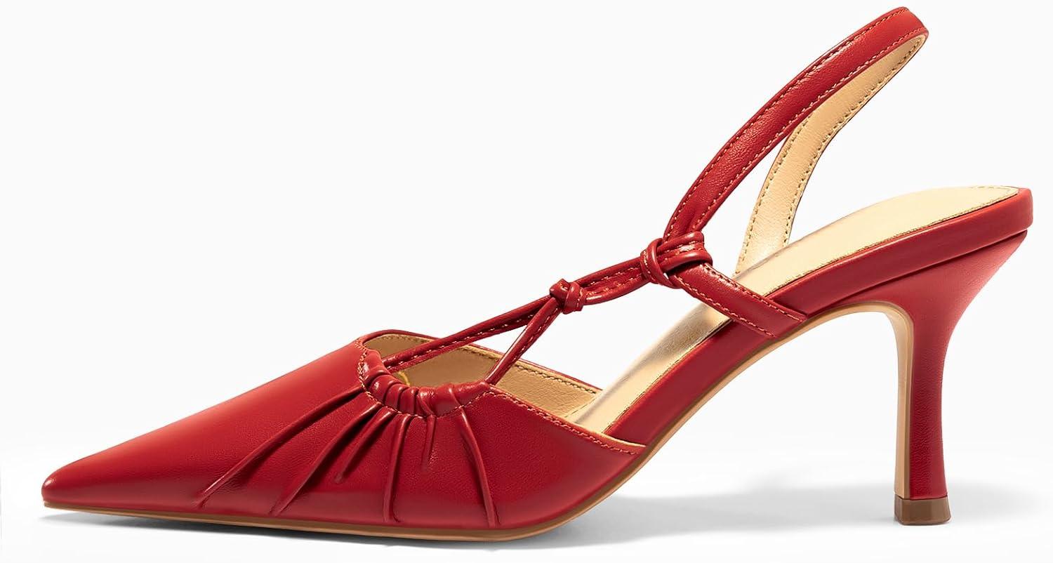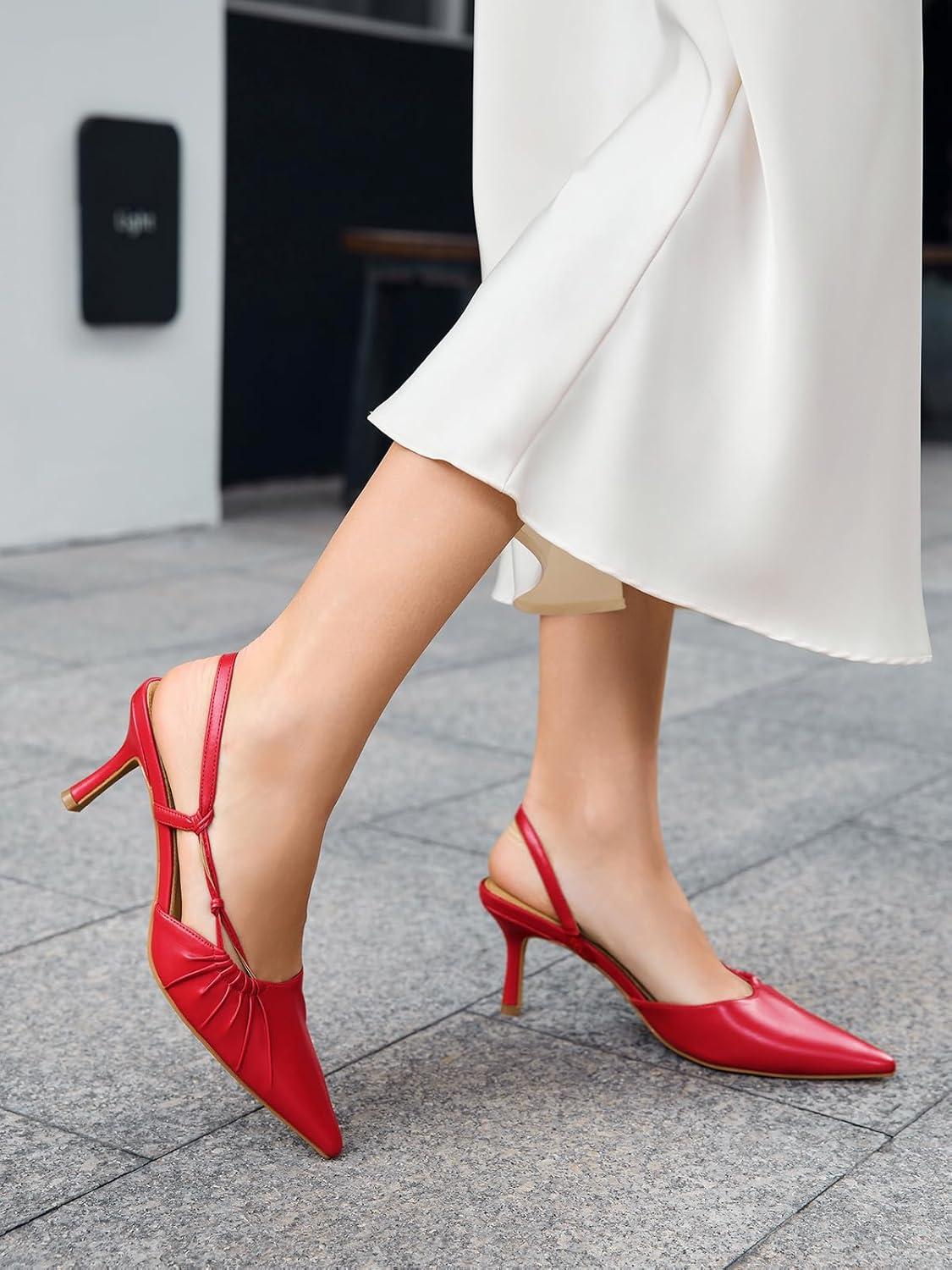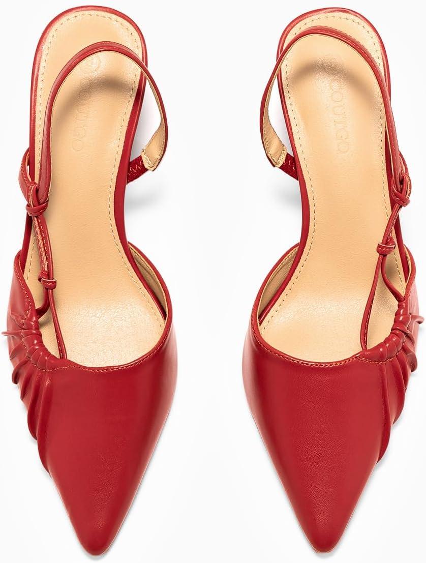 Coutgo Womens Slingback Kitten Heels Closed Pointed Toe Pumps D’Orsay Wedding Party Dress Shoes(Red)
