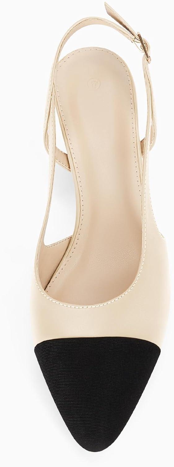 Coutgo Womens Slingback Kitten Heels Low Chunky Heel Splicing Toe Office Wedding Dress Pumps Shoes(Beige)