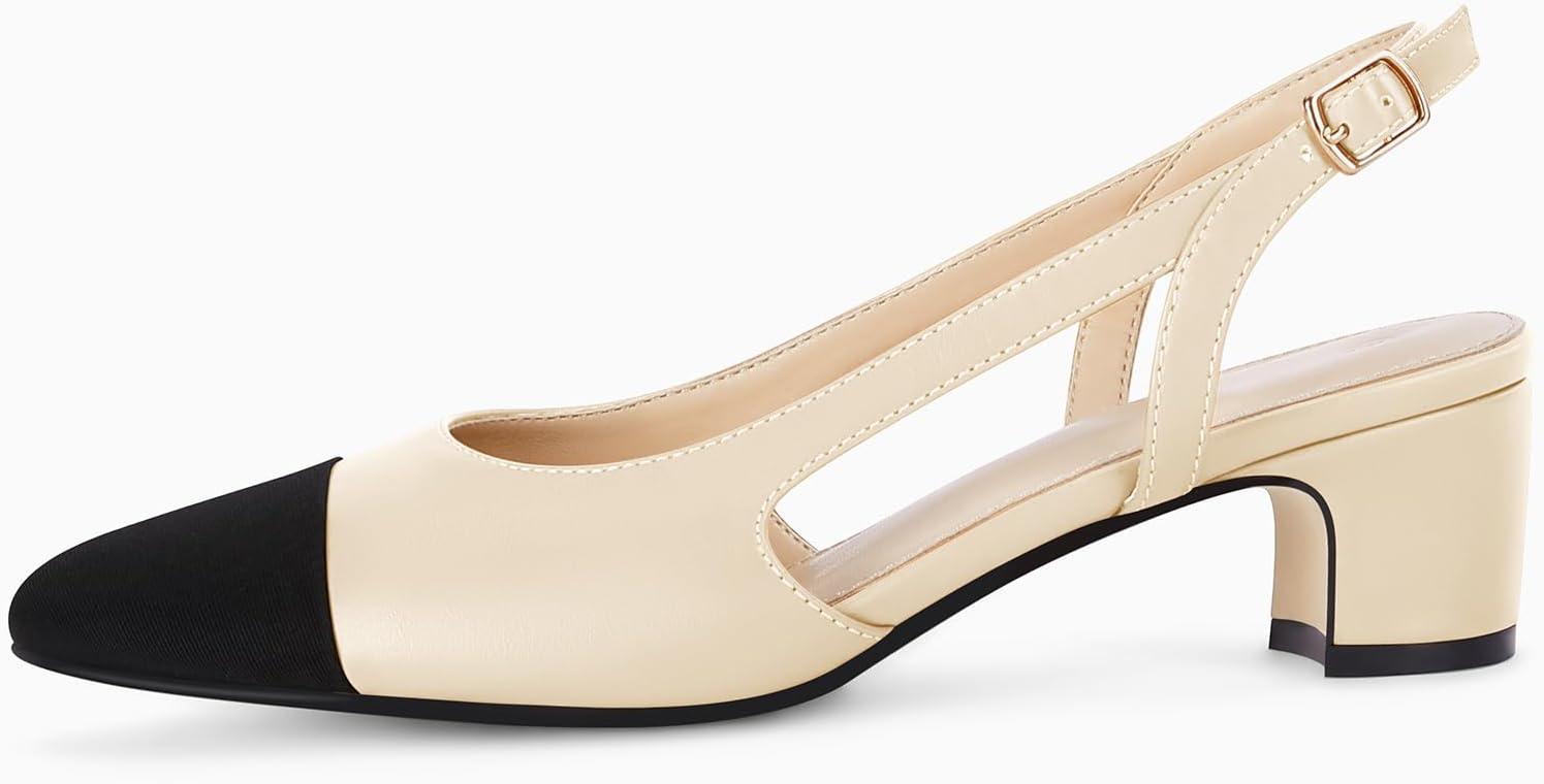 Get the Coutgo Womens Slingback Kitten Heels Low Chunky Heel Splicing Toe Office Wedding Dress Pumps Shoes(Beige) you want at a price you can afford with our markdown sale.