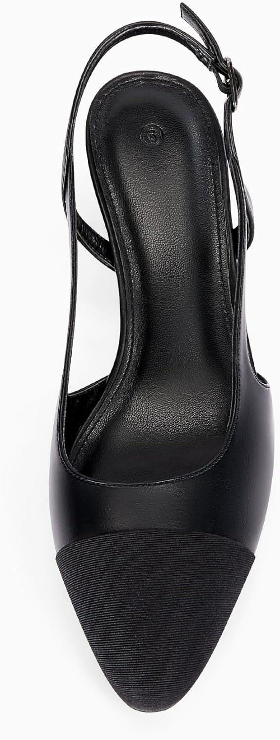 Coutgo Womens Slingback Kitten Heels Low Chunky Heel Splicing Toe Office Wedding Dress Pumps Shoes(Black)