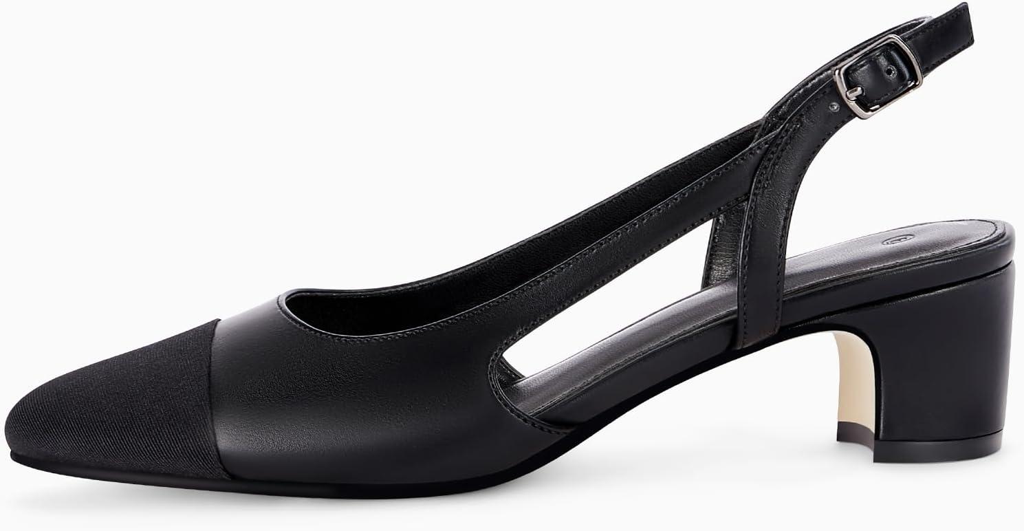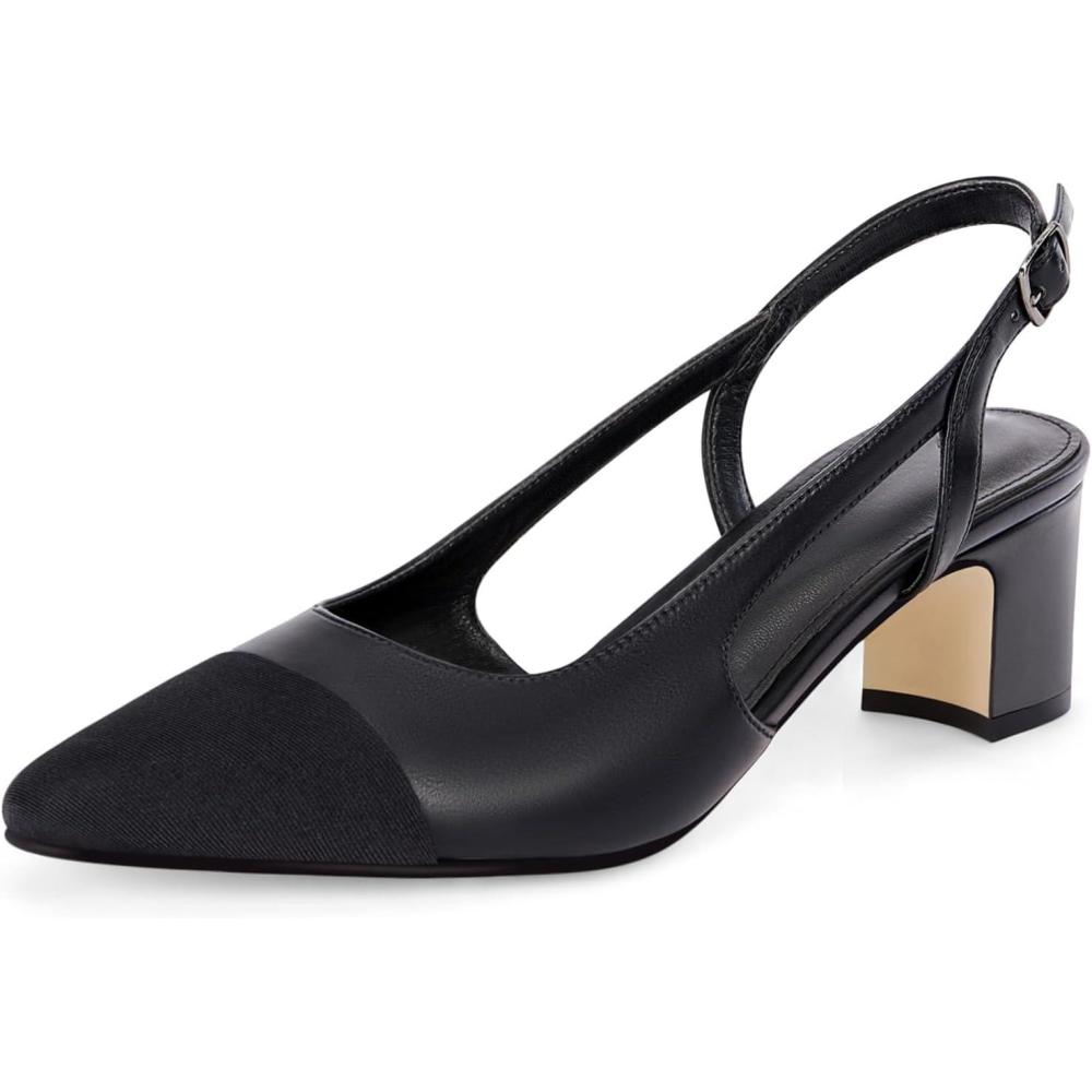 Get the Coutgo Womens Slingback Kitten Heels Low Chunky Heel Splicing Toe Office Wedding Dress Pumps Shoes(Black) you want at a price you can afford with our markdown sale.