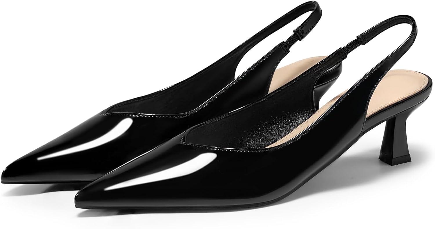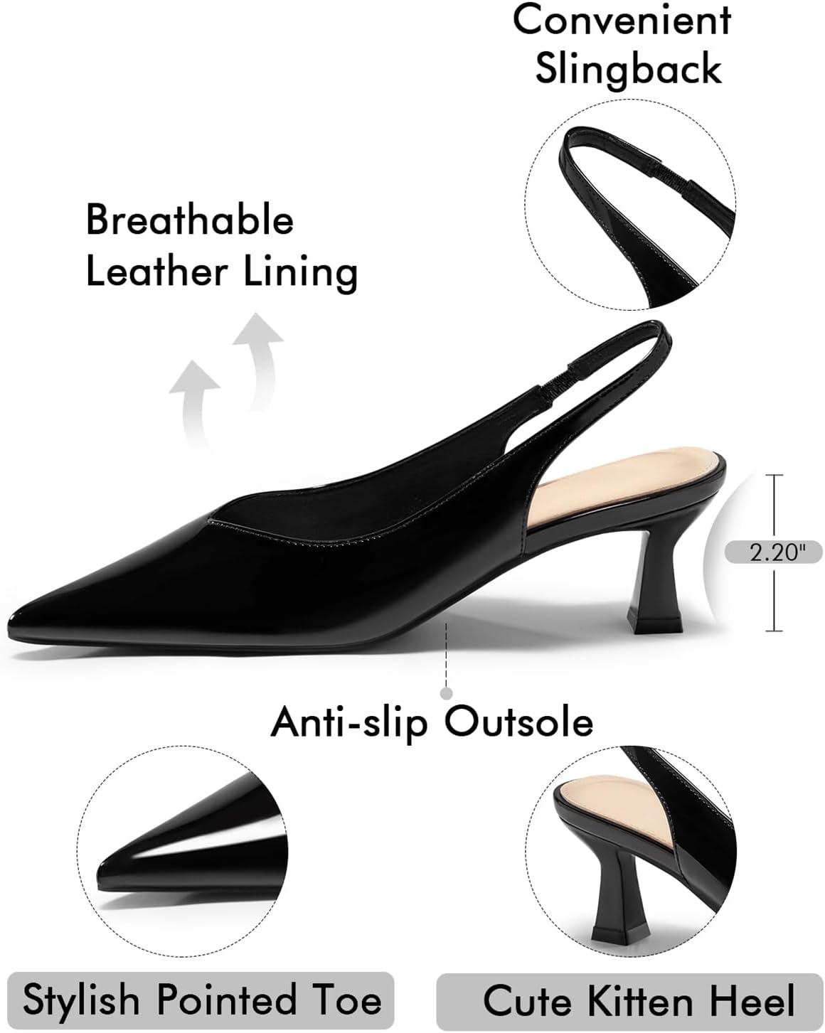 Coutgo Womens Slingback Kitten Heels Low Heel Closed Pointed Toe Pumps Heeled Sandals Dress Work Shoes(Black)