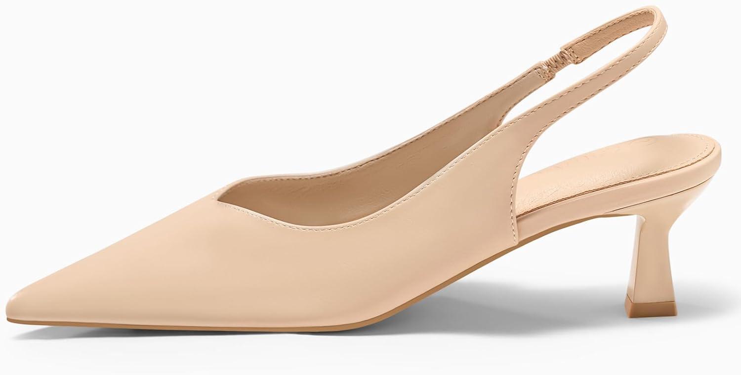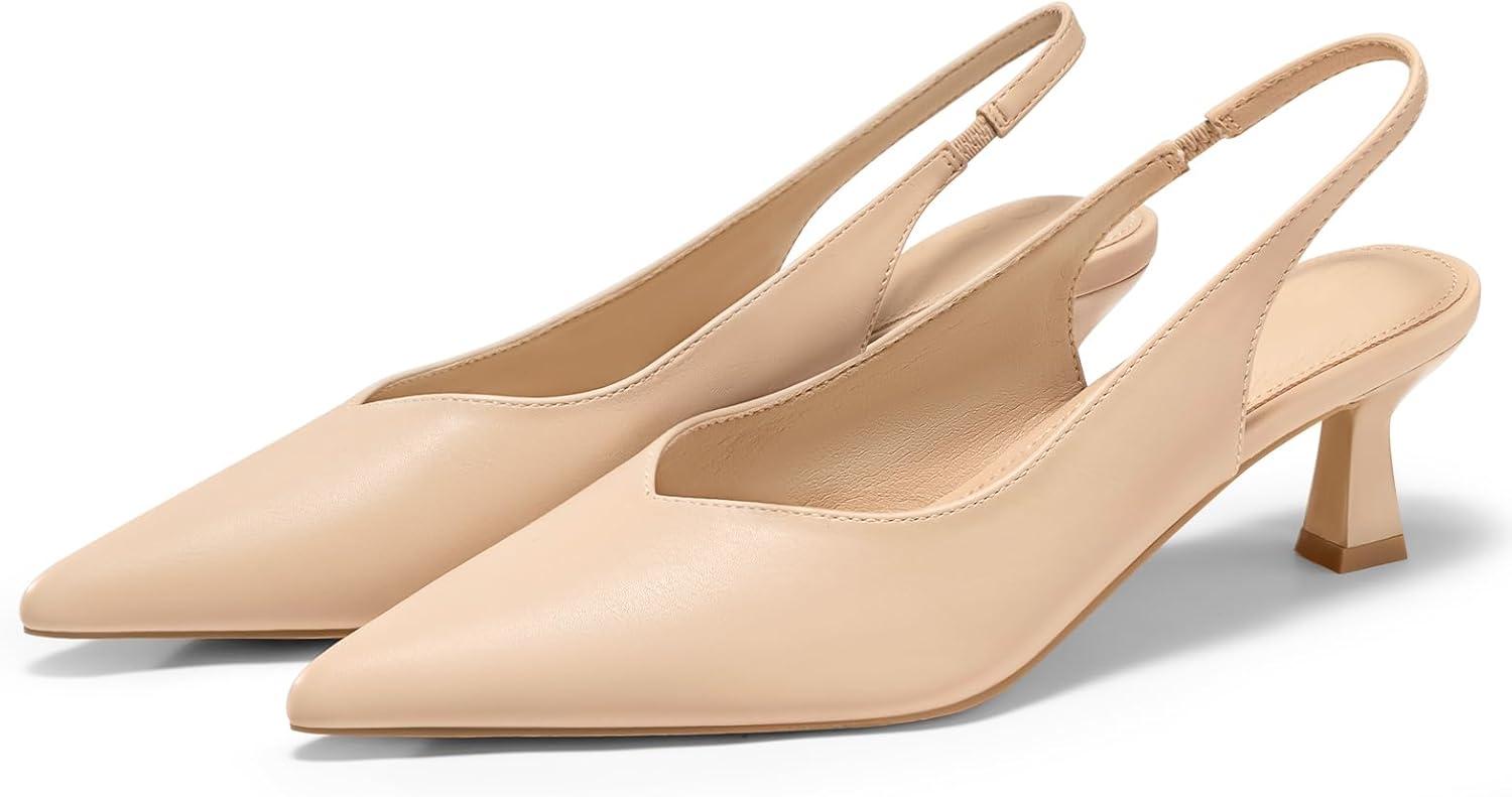 Get your hands on our exclusive Coutgo Womens Slingback Kitten Heels Low Heel Closed Pointed Toe Pumps Heeled Sandals Dress Work Shoes(Khaki) collection, now at a discounted price.