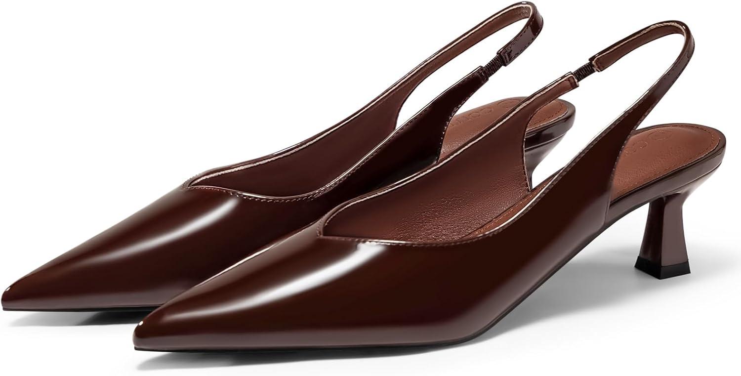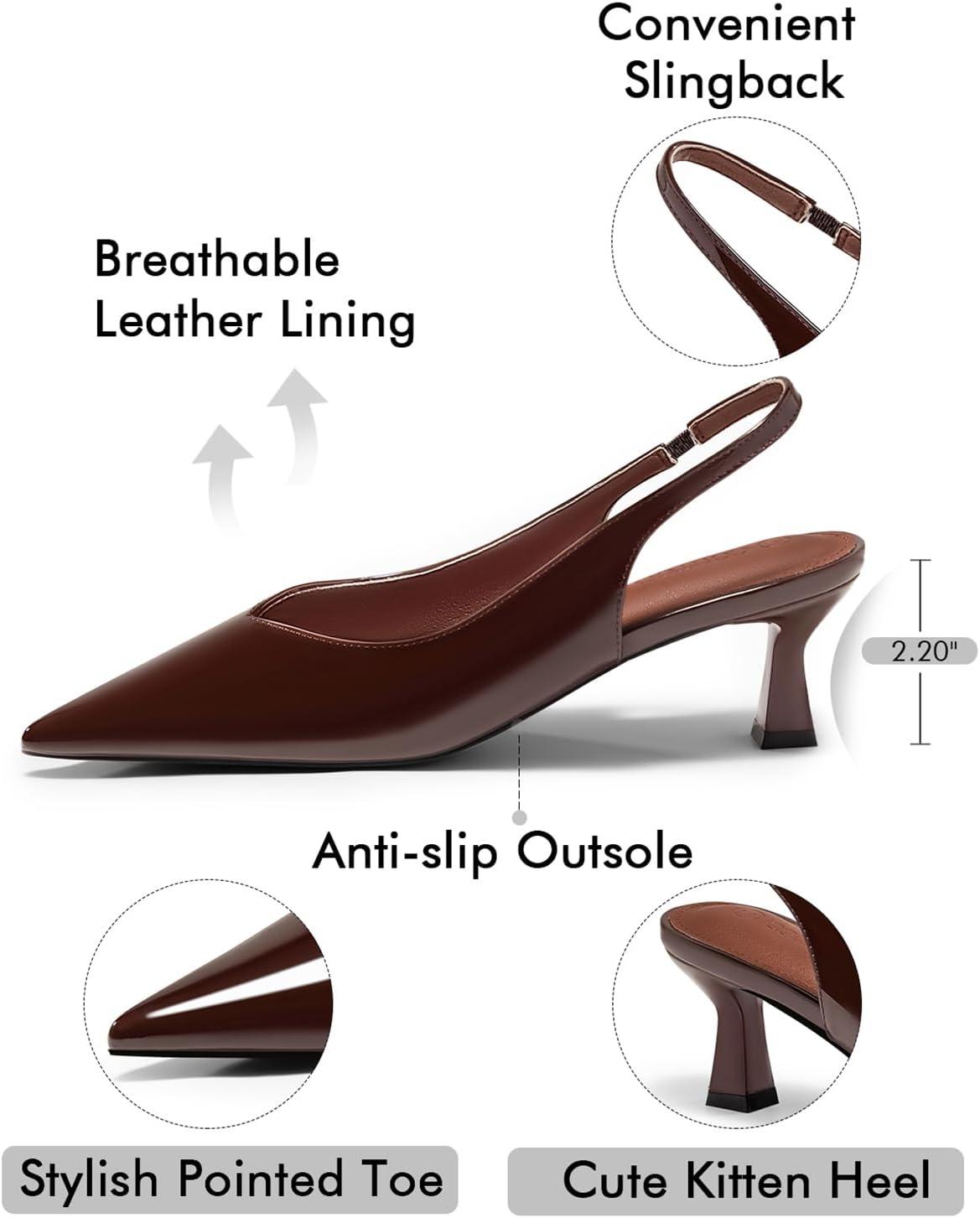 Coutgo Womens Slingback Kitten Heels Low Heel Closed Pointed Toe Pumps Heeled Sandals Dress Work Shoes(Red-brown)