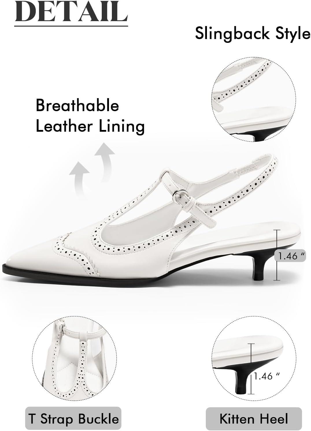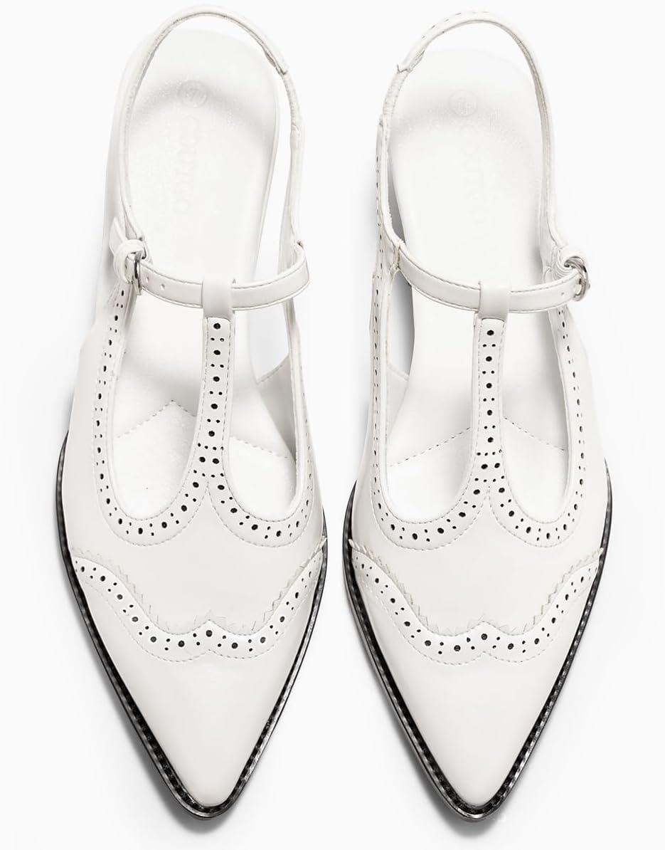 Save big on Coutgo Womens Slingback Kitten Heels Oxford T Strap Pumps Low Heel Closed Pointed Toe Vintage Dress Shoes(White) and accessories during our BOGO sale. Buy one, get one 50% off!