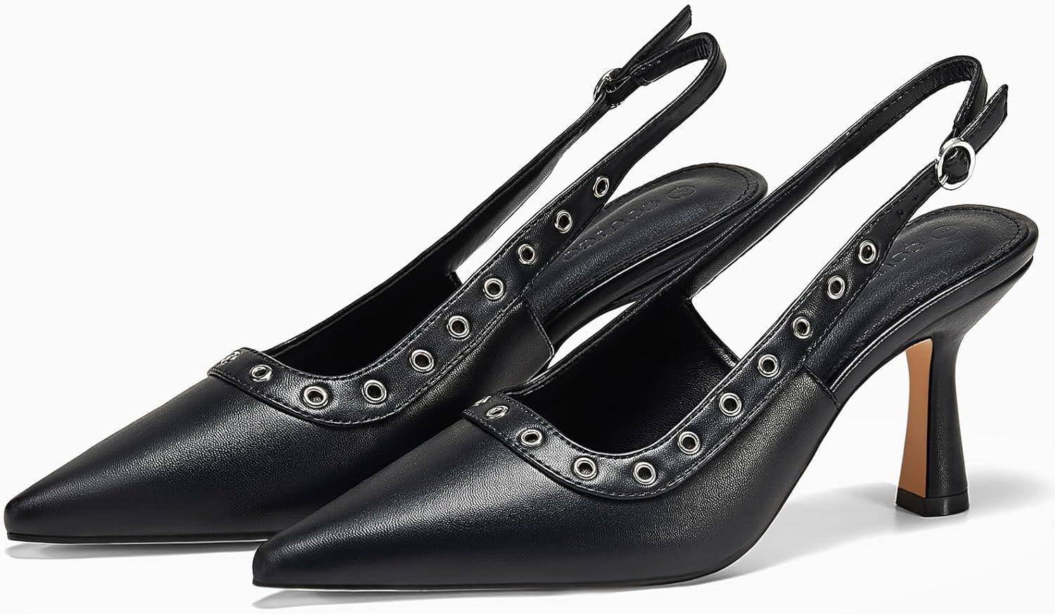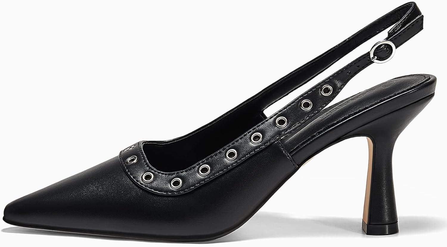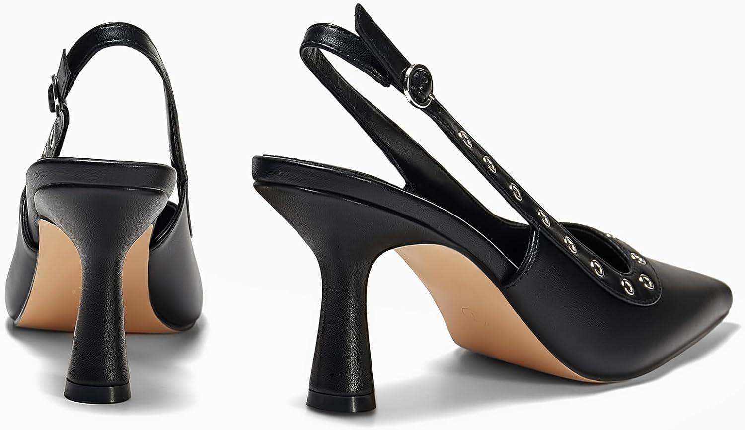 Coutgo Womens Slingback Kitten Heels Studded Closed Pointed Toe Slip On Leather Pumps Work Dress Shoes(Black)