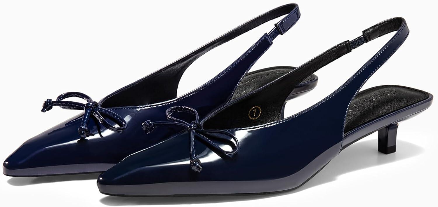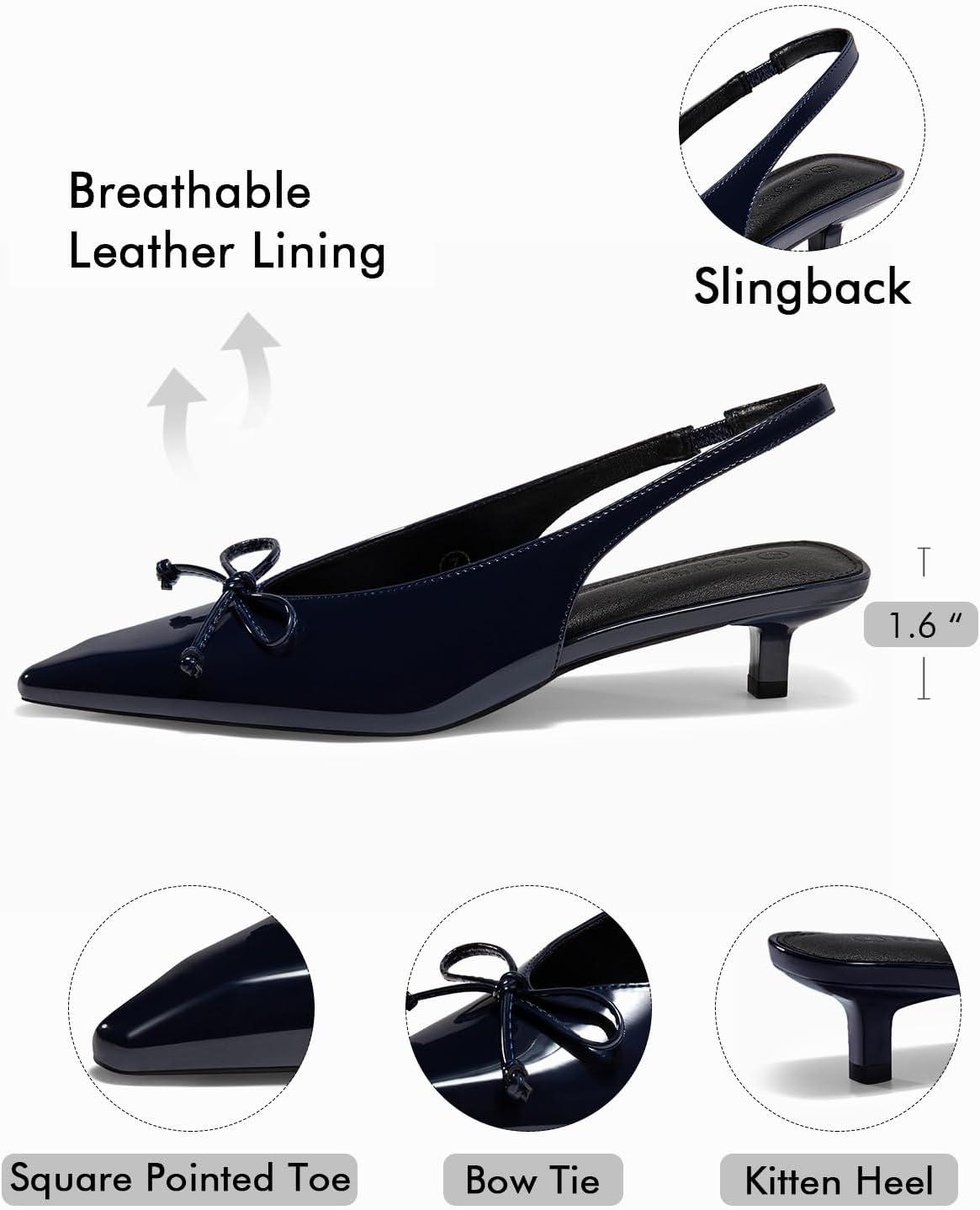 Coutgo Womens Slingback Kitten Low Heels Dress Shoes Closed Pointed Toe Bow Tie Slip on Office Work Pumps(Navy)