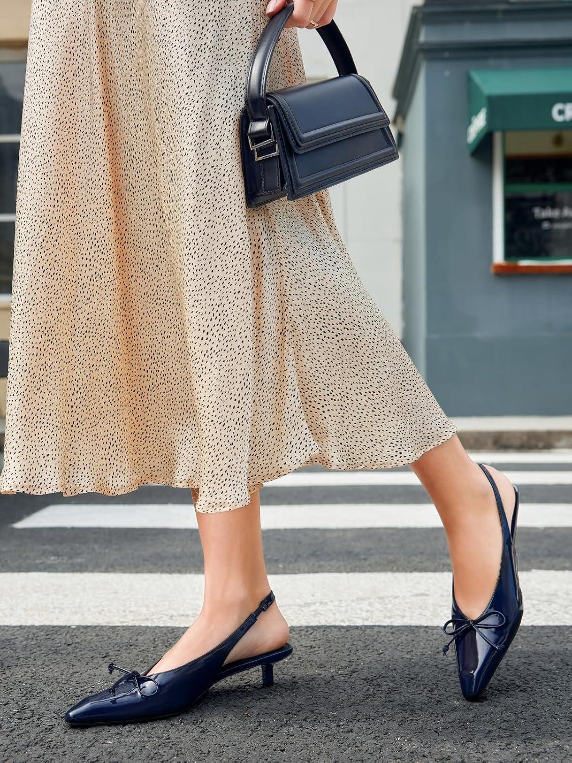Be the first to review “Coutgo Womens Slingback Kitten Low Heels Dress Shoes Closed Pointed Toe Bow Tie Slip on Office Work Pumps(Navy)”