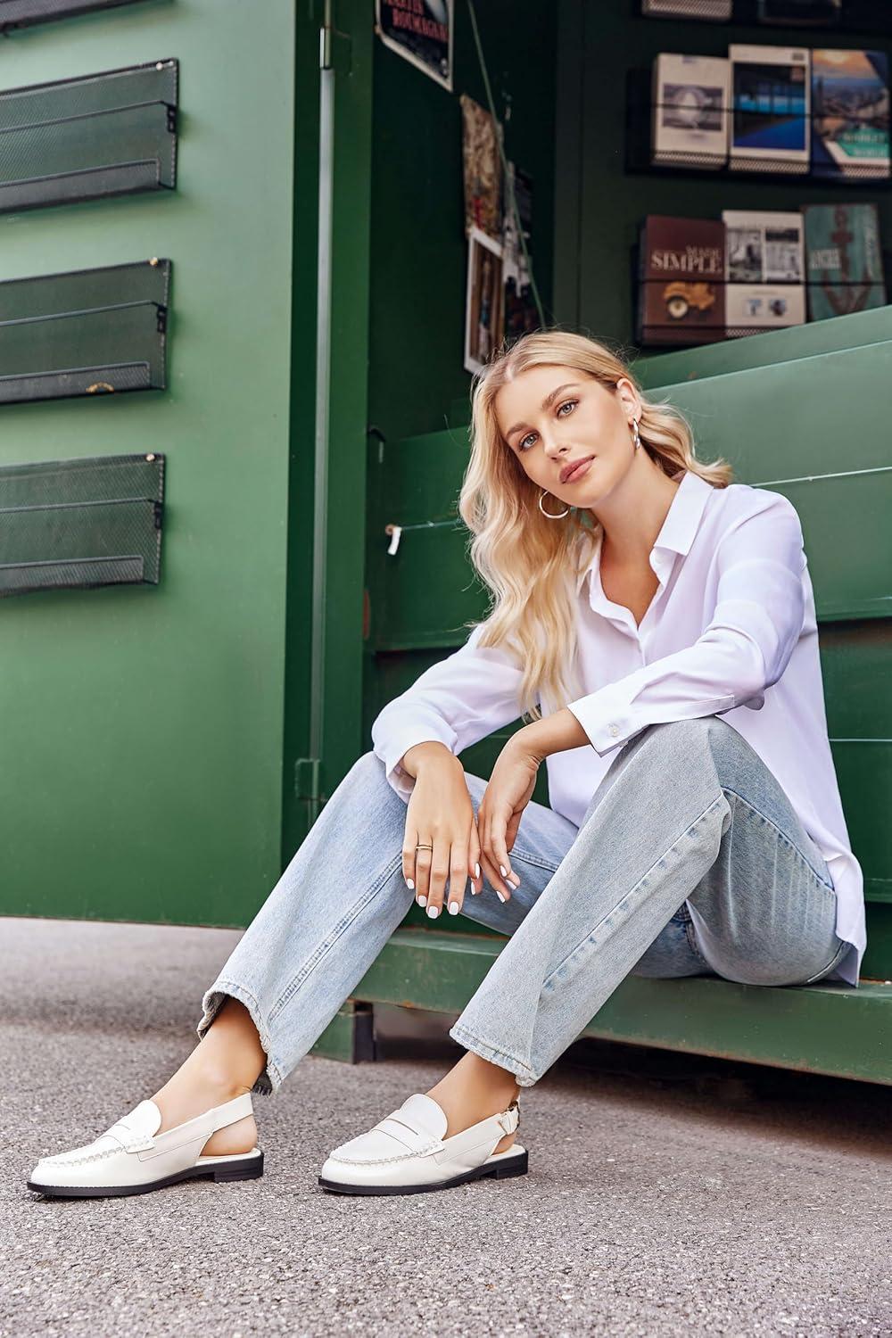 Score big on Coutgo Women’s Slingback Loafers Comfortable Pointed Toe Chunky Low Heel Adjustable Buckle Strap Flat Shoes(Creamy-white) and accessories during our BOGO sale. Buy one, get one 50% off!