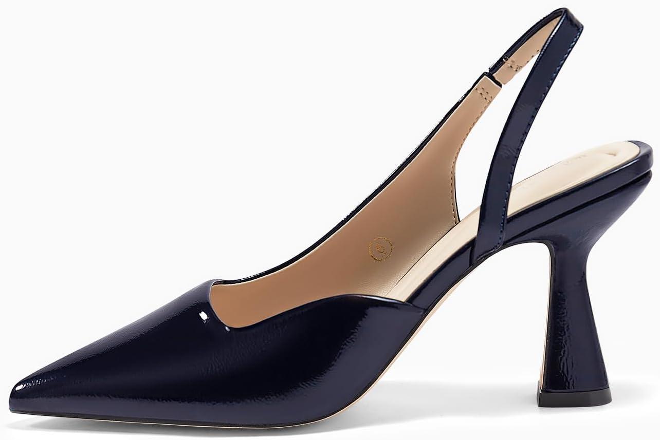 Coutgo Womens Slingback Stiletto High Heels Closed Pointed Toe Pumps D’Orsay Sexy Office Dress Shoes(Navy)