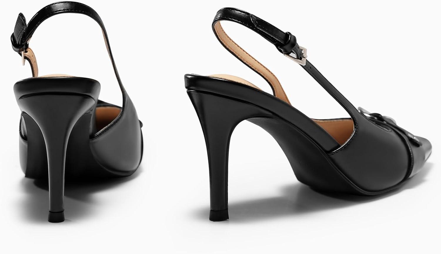 Coutgo Womens Slingback Stiletto High Heels Closed Pointed Toe Pumps with Metal Ring Party Dress Shoes(Black)
