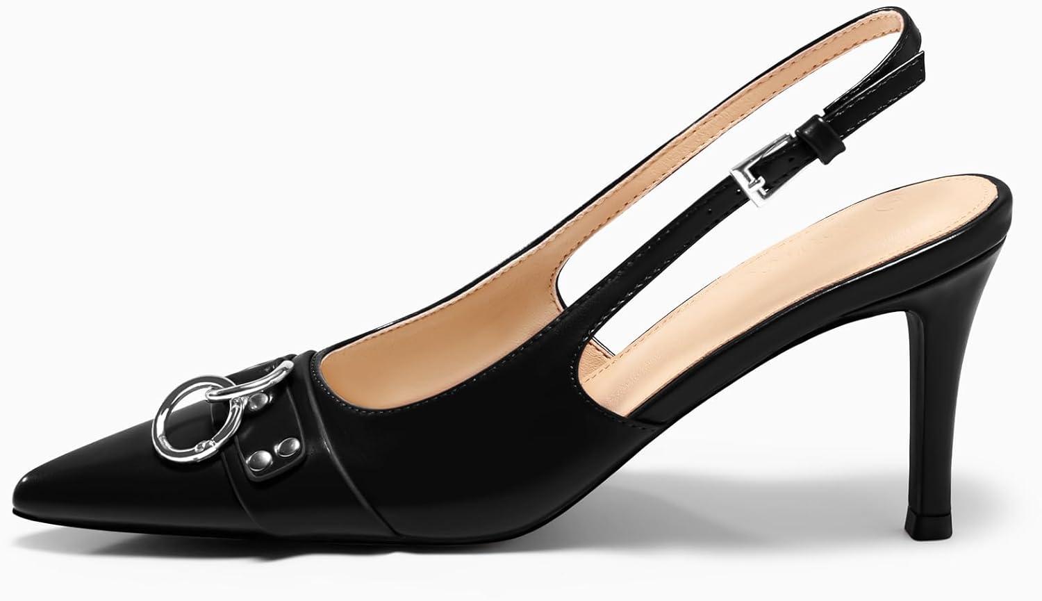 Get up to 70% off on Coutgo Womens Slingback Stiletto High Heels Closed Pointed Toe Pumps with Metal Ring Party Dress Shoes(Black) styles during our end-of-season clearance event.