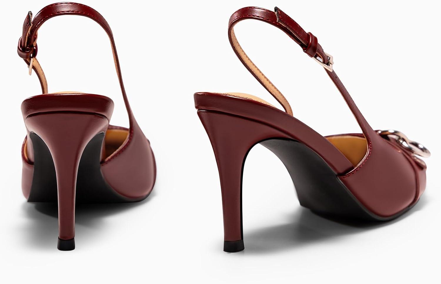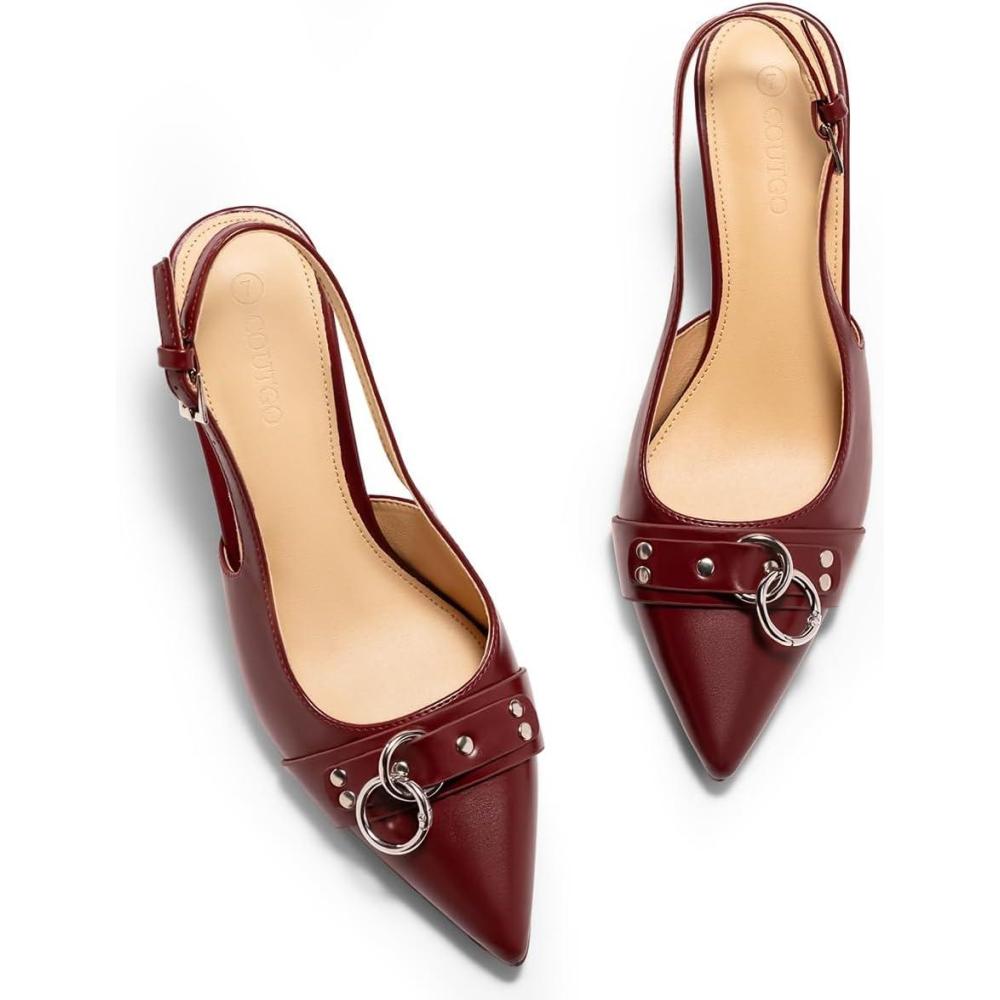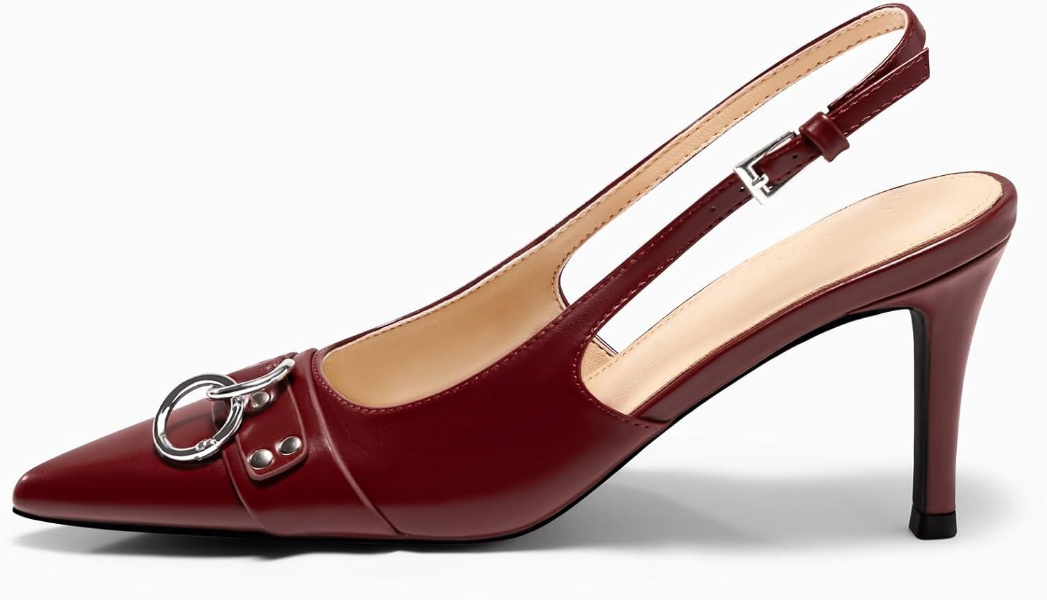 Coutgo Womens Slingback Stiletto High Heels Closed Pointed Toe Pumps with Metal Ring Party Dress Shoes(Burgundy)
