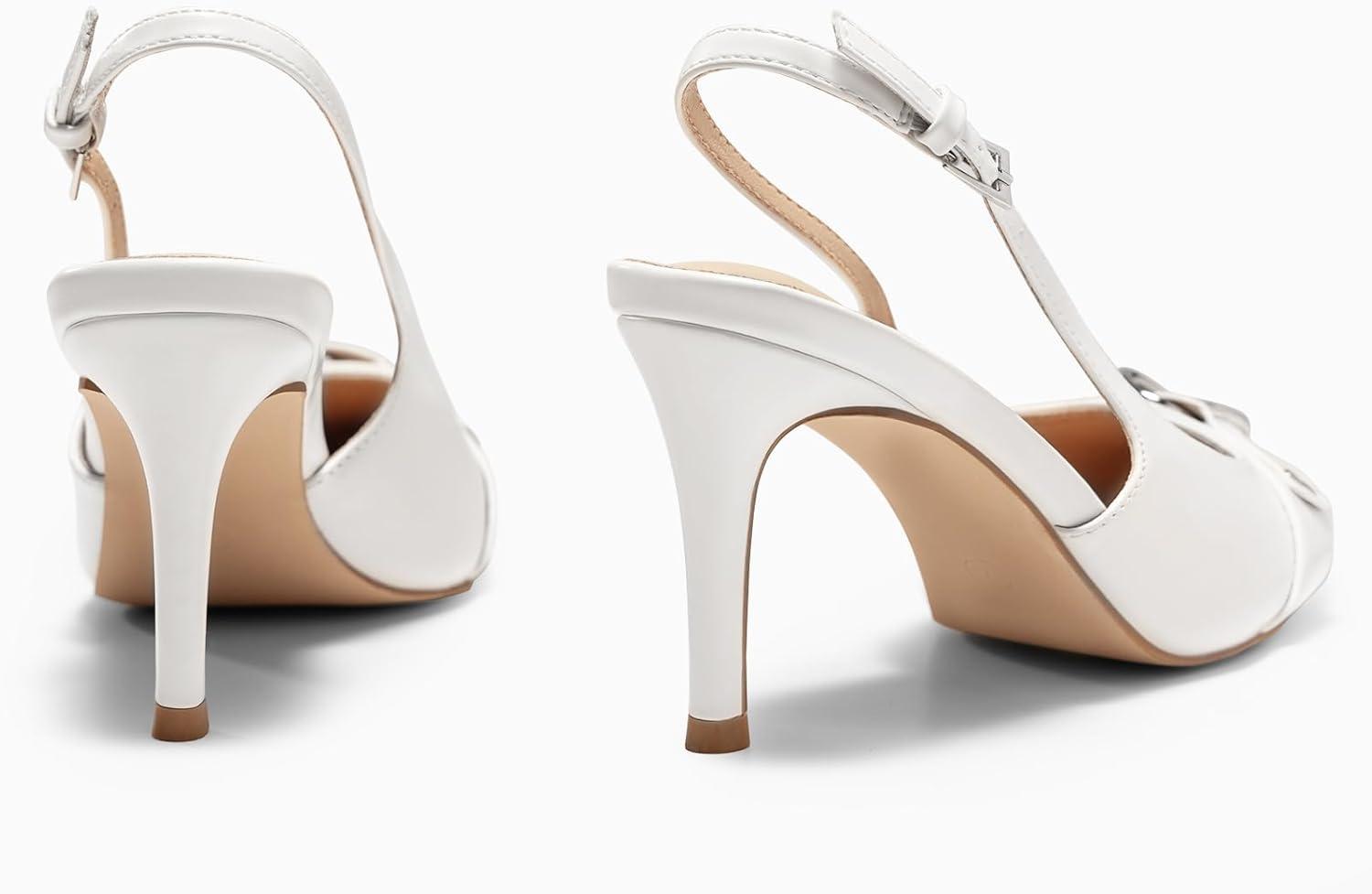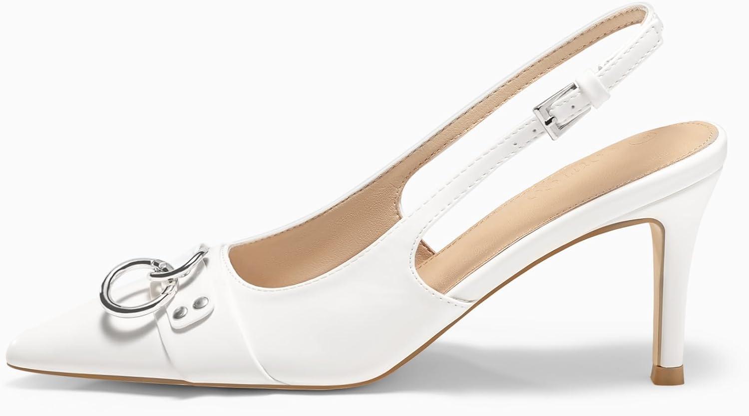 Coutgo Womens Slingback Stiletto High Heels Closed Pointed Toe Pumps with Metal Ring Party Dress Shoes(White)