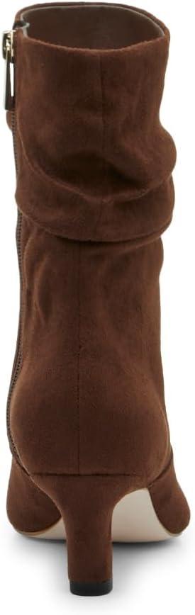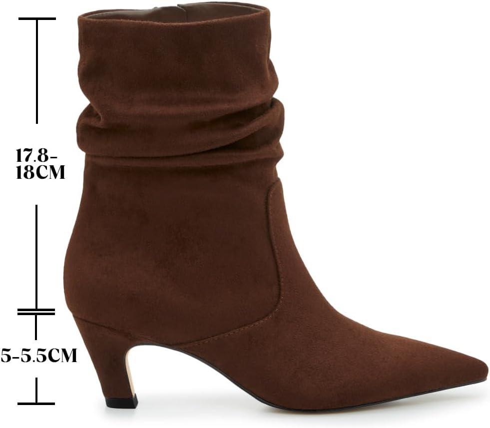 Coutgo Women’s Slouchy Ankle Boots Low Kitten Heel Pointed Toe Booties Side Zipper Fall Shoes(Dark Brown)