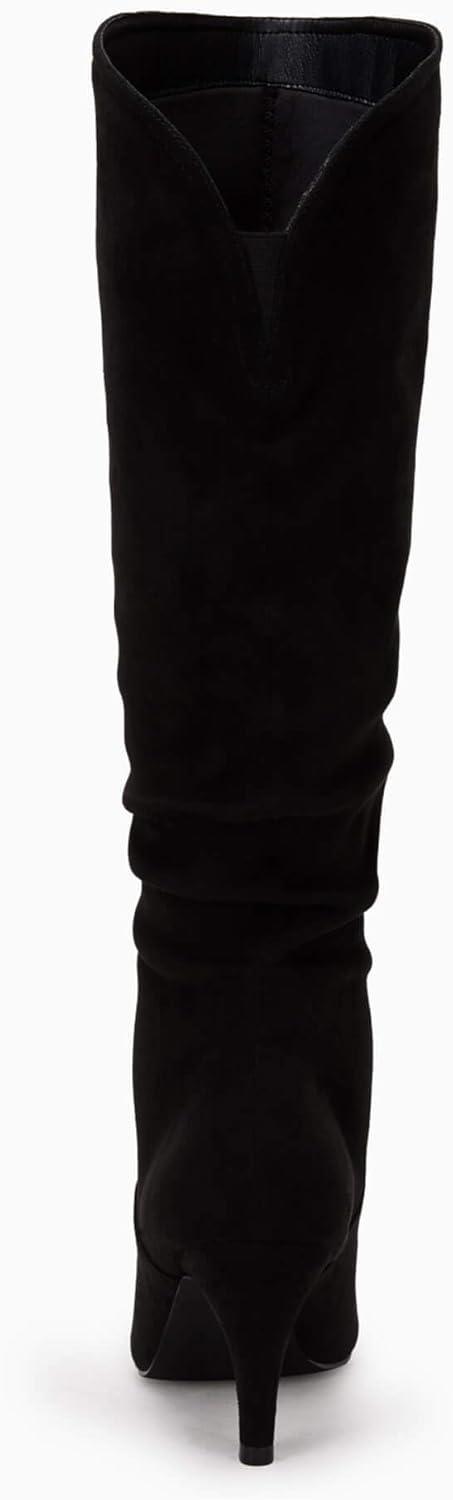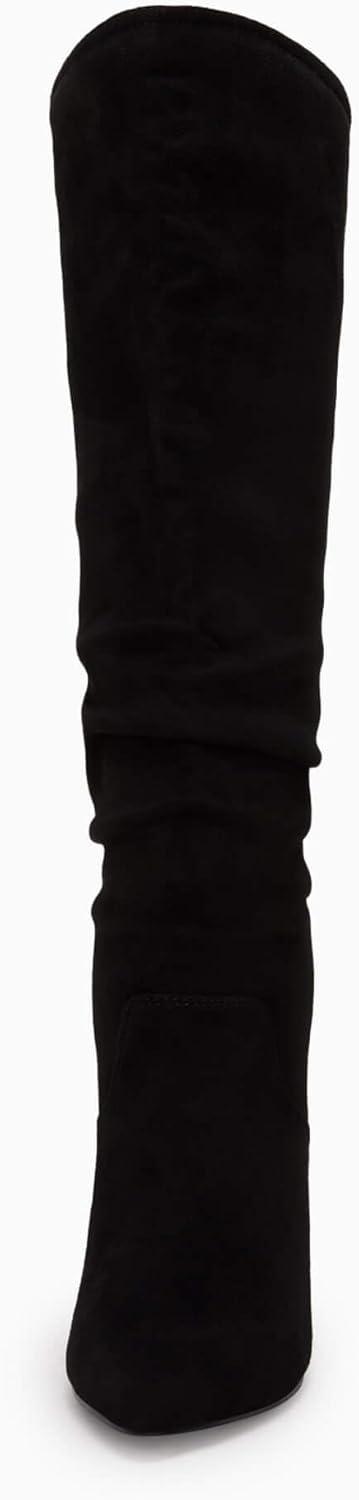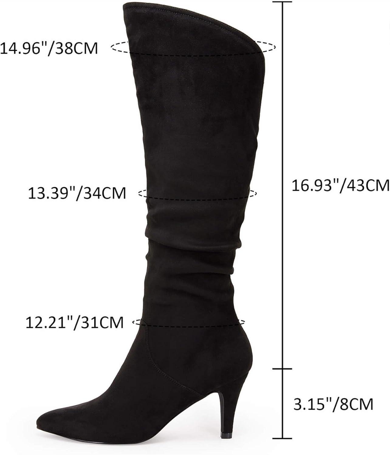 Coutgo Womens Slouchy Knee High Boots Wide Calf Kitten Heel Pointed Toe Pull On Long Boots Winter Shoes(Black)