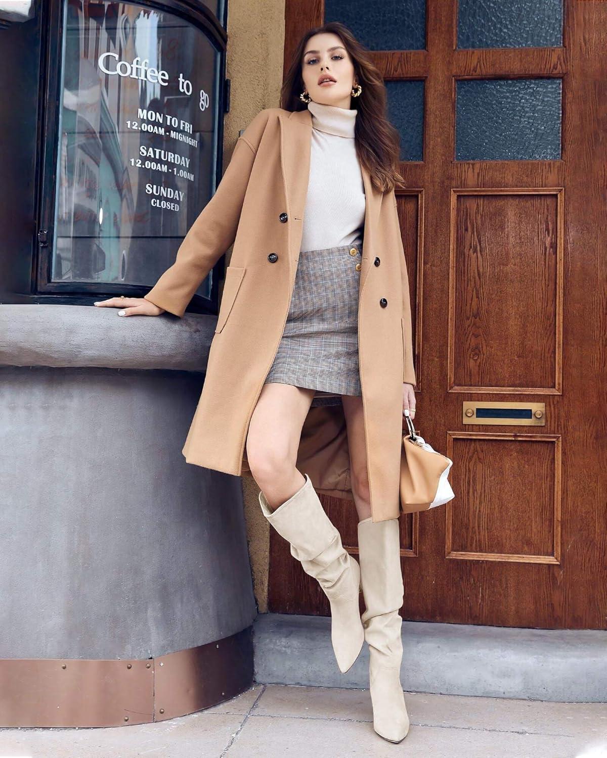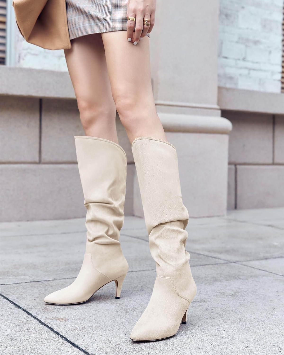 Get the Coutgo Womens Slouchy Knee High Boots Wide Calf Kitten Heel Pointed Toe Pull On Long Boots Winter Shoes(Off-white) you’ve been eyeing at a discounted price during our seasonal sale event.