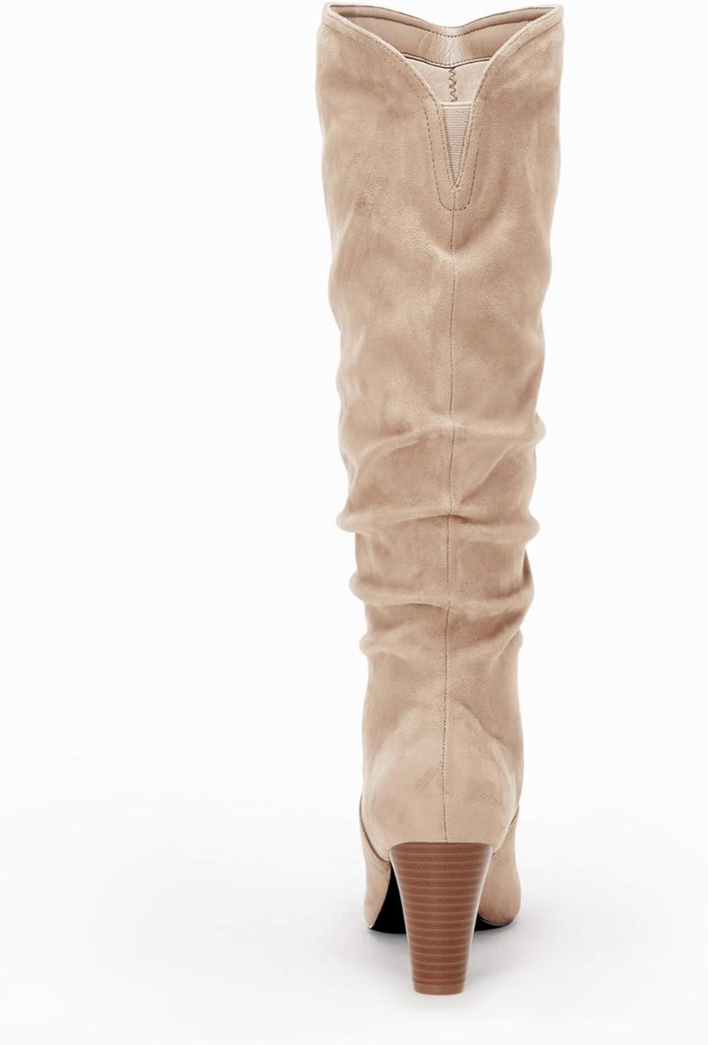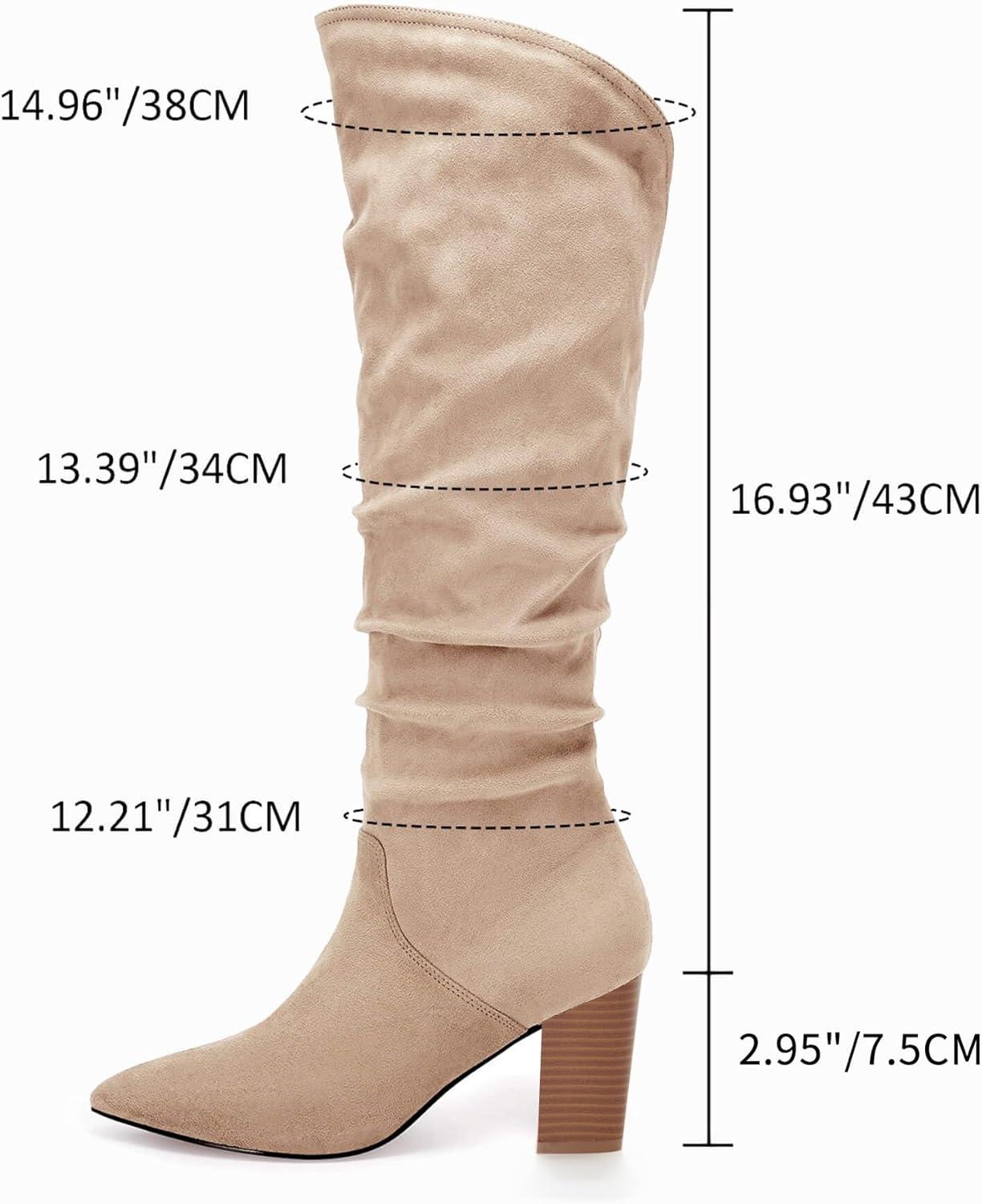 Coutgo Womens Slouchy Knee High Boots Wide Calf Kitten Heel Pointed Toe Pull On Long Boots Winter Shoes(Z-nude)