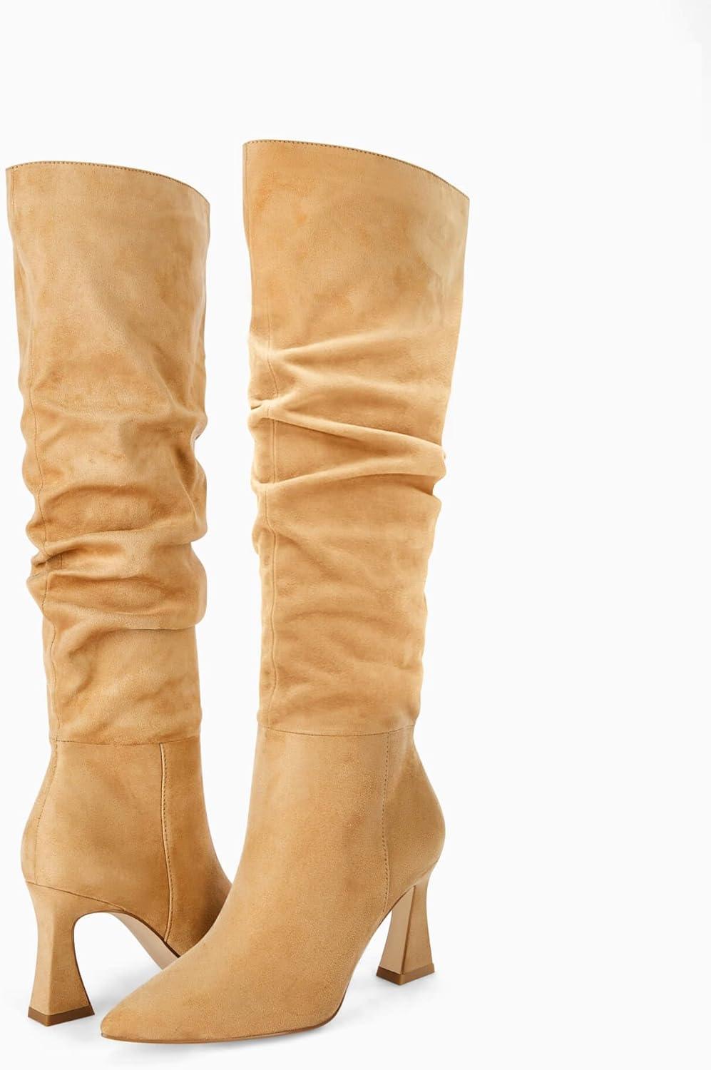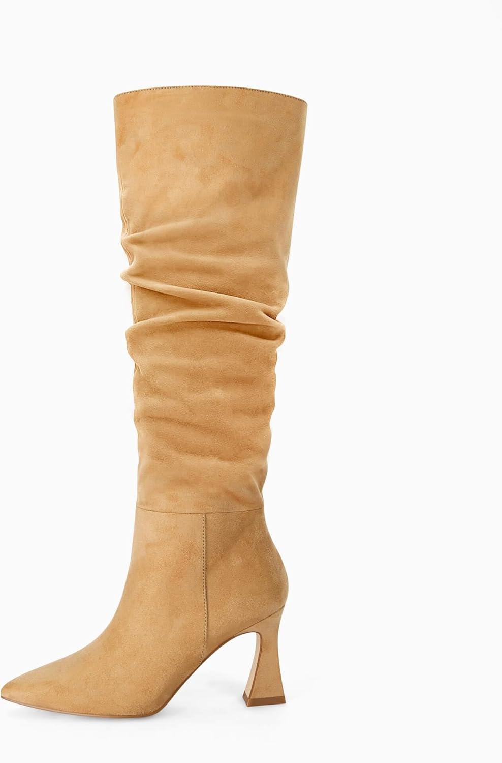 Discover the latest Coutgo Women’s Slouchy Knee High Boots Wide Calf Pointed Toe Side Zipper Chunky Heel Long Boots Winter Shoes(Khaki) from and take advantage of our limited-time introductory offer.