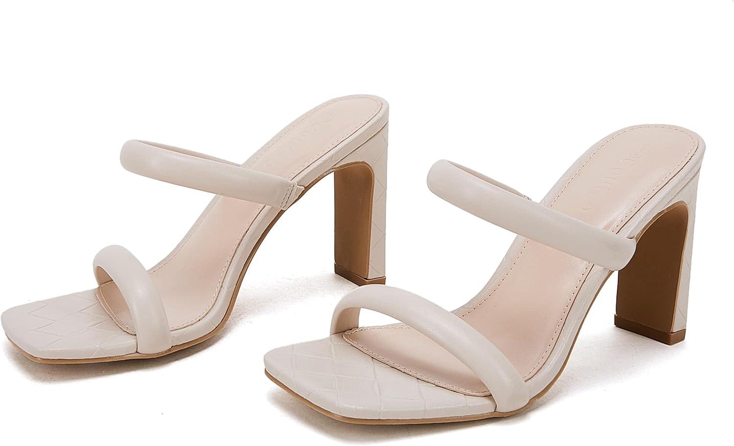 Save big on Coutgo Womens Square Open Toe Heeled Sandals Two Strap High Heel Backless Dress Slip On Mules(Beige) during our summer blowout sale. Limited quantities available.