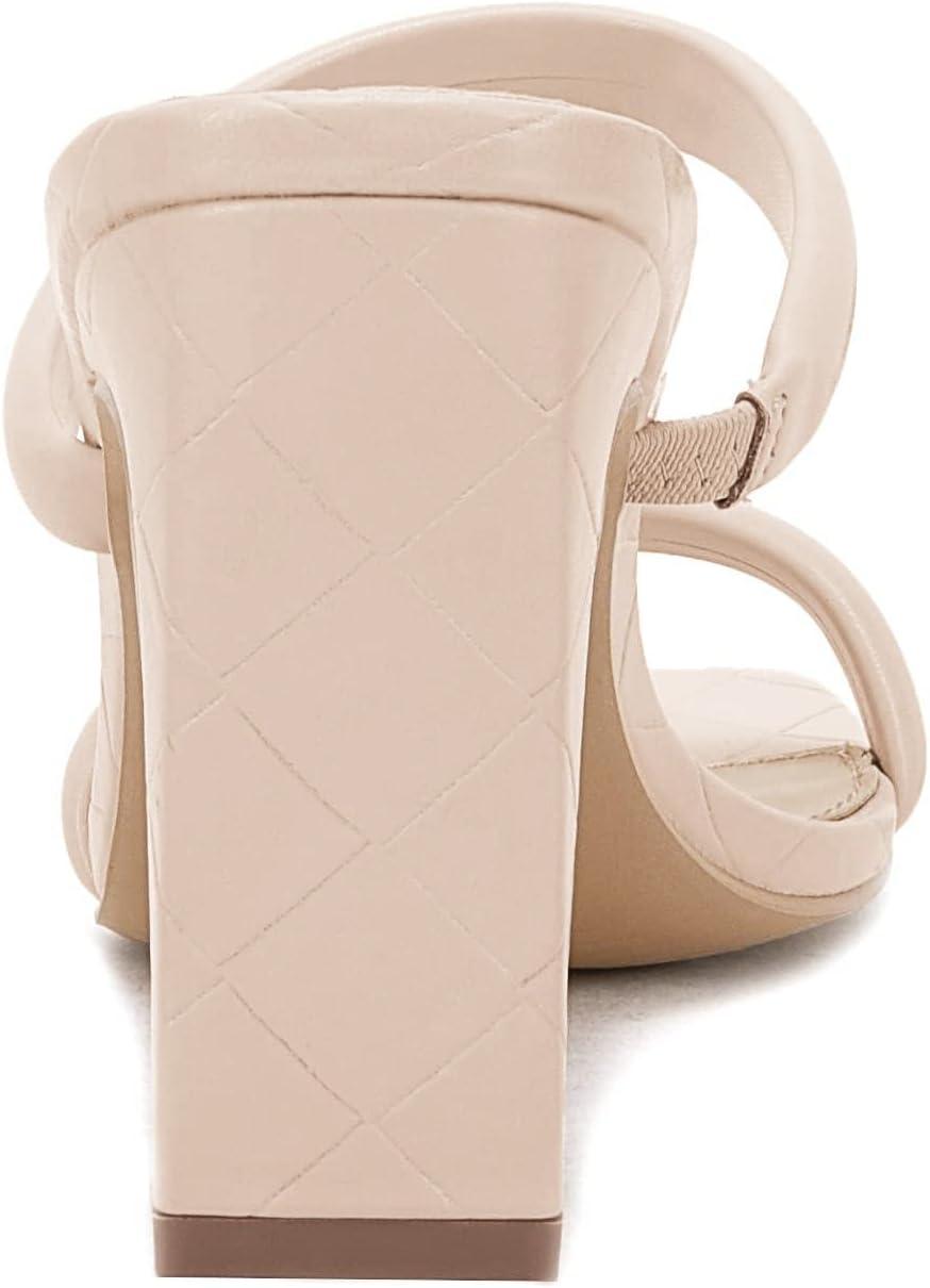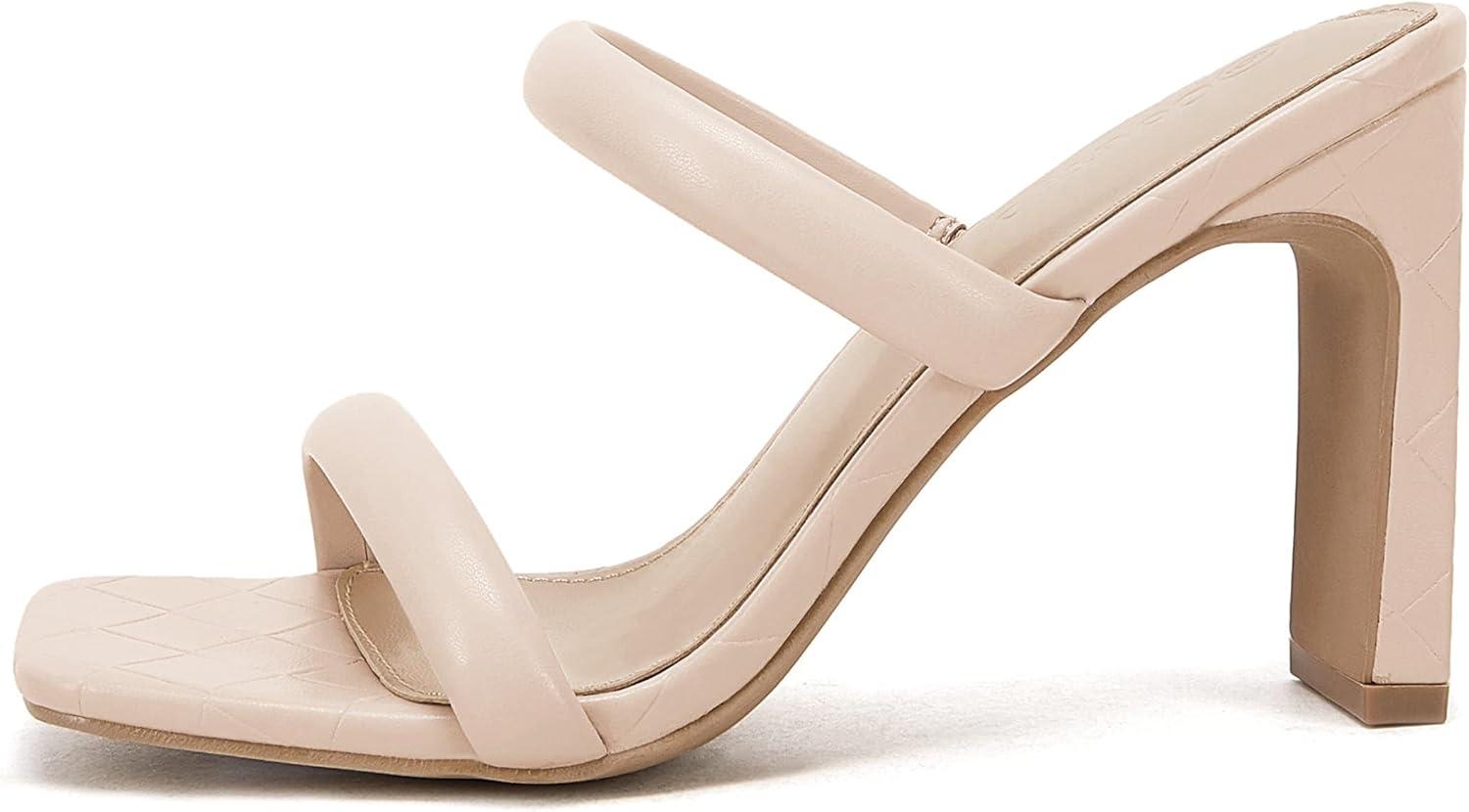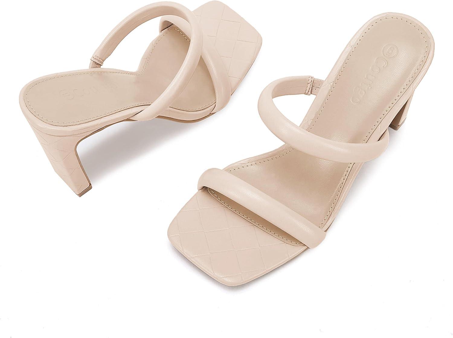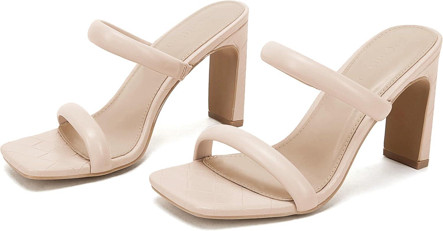 Coutgo Womens Square Open Toe Heeled Sandals Two Strap High Heel Backless Dress Slip On Mules(Nude)