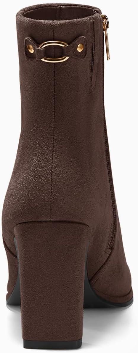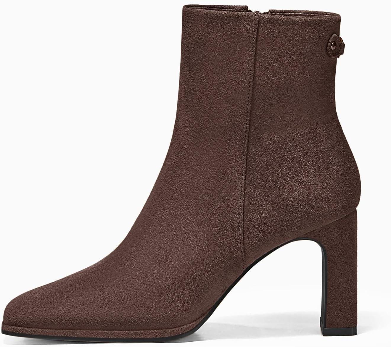 Coutgo Women’s Square Toe Ankle Boots Chunky Block Heel Side Zipper Booties Faux Suede Winter Shoes(Chocolate)