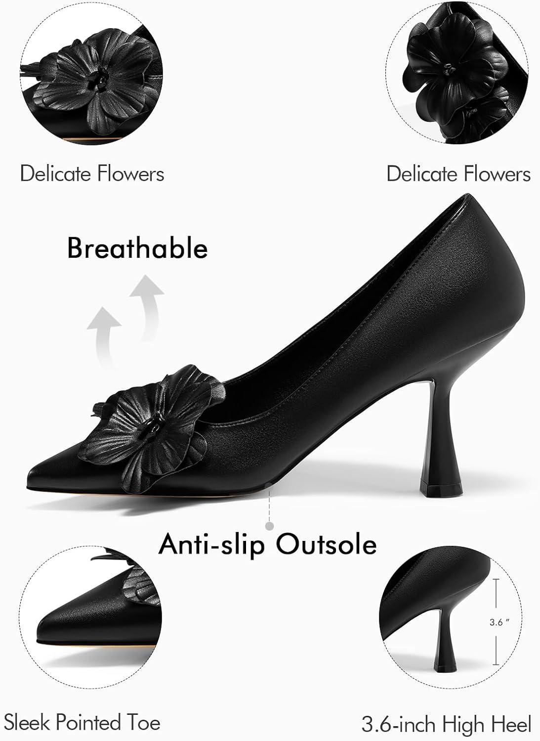 Get your hands on our exclusive Coutgo Womens Stiletto High Heels Flower Dress Shoes Closed Pointed Toe Slip on Wedding Party Formal Pumps(Black) collection, now at a discounted price.