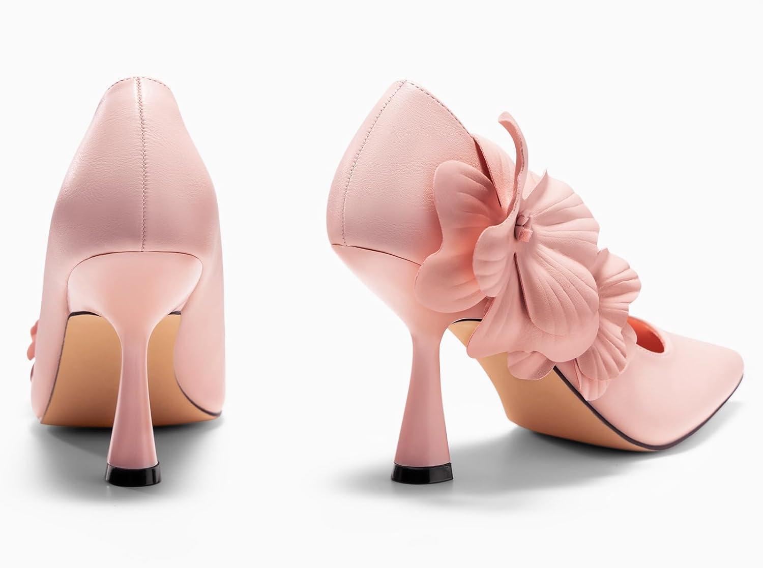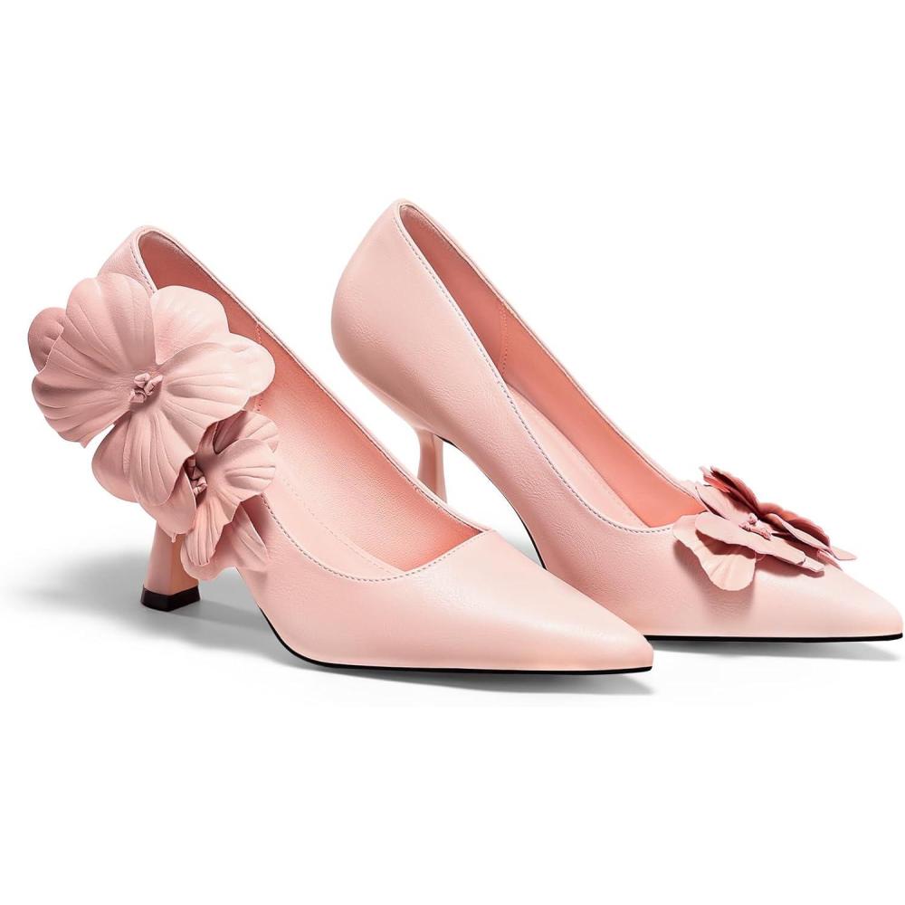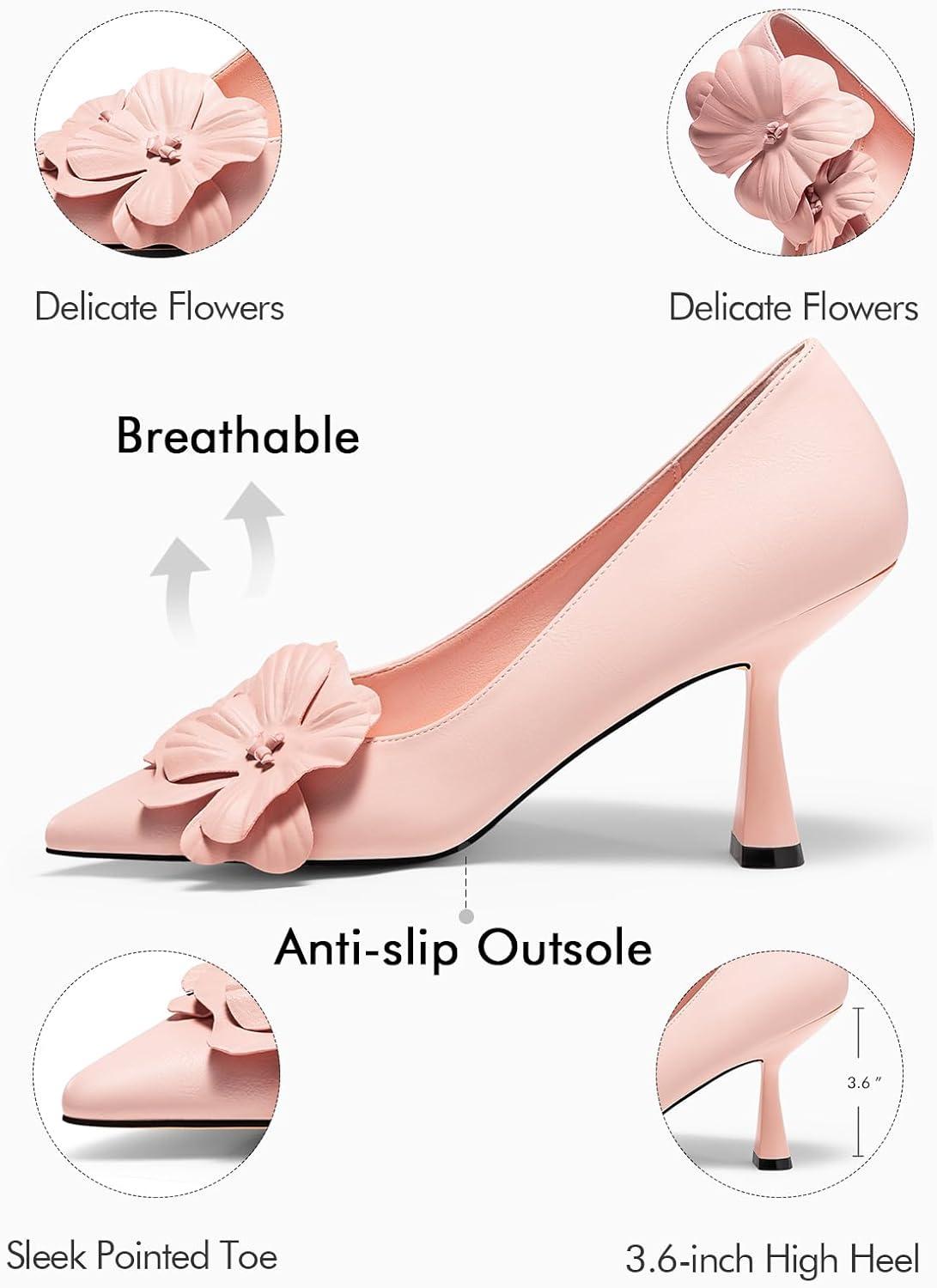 Coutgo Womens Stiletto High Heels Flower Dress Shoes Closed Pointed Toe Slip on Wedding Party Formal Pumps(Pink)