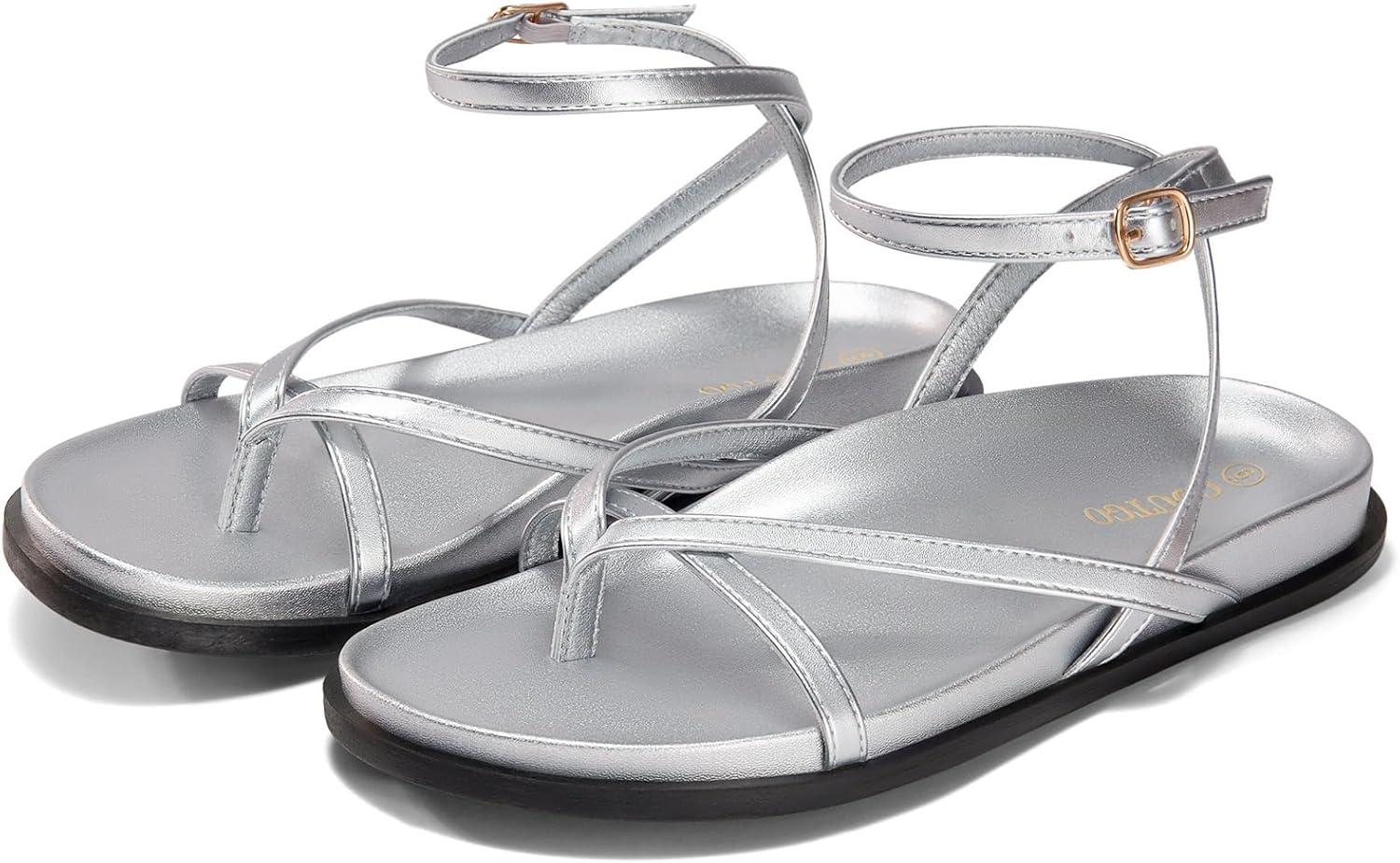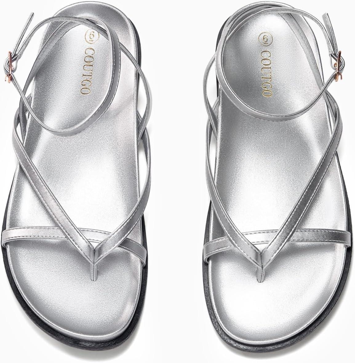 Get your hands on our newest Coutgo Womens Strappy Flat Sandals Comfortable Flip Flop Footbed Sandals Ankle Strap Summer Beach Shoes(Silver) and enjoy a limited-time discount offer.