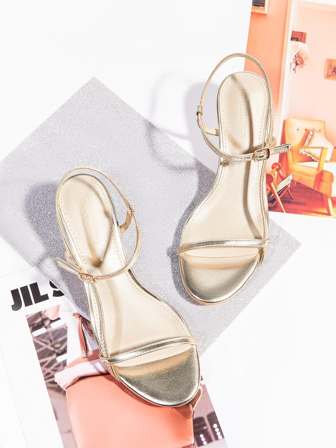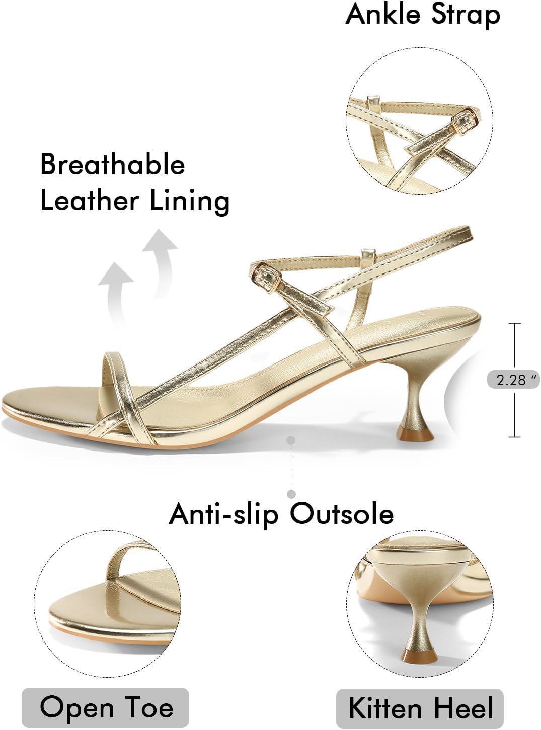 Coutgo Womens Strappy Heeled Sandals Kitten Low Heel Open Toe Ankle Strap Party Wedding Dress Shoes(Gold)