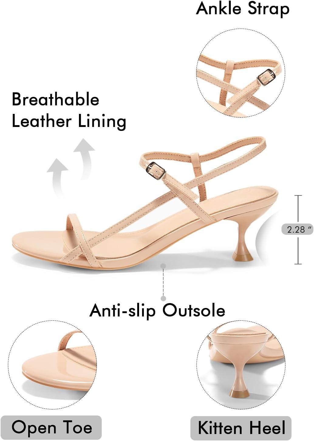 Coutgo Womens Strappy Heeled Sandals Kitten Low Heel Open Toe Ankle Strap Party Wedding Dress Shoes(Nude Pink)