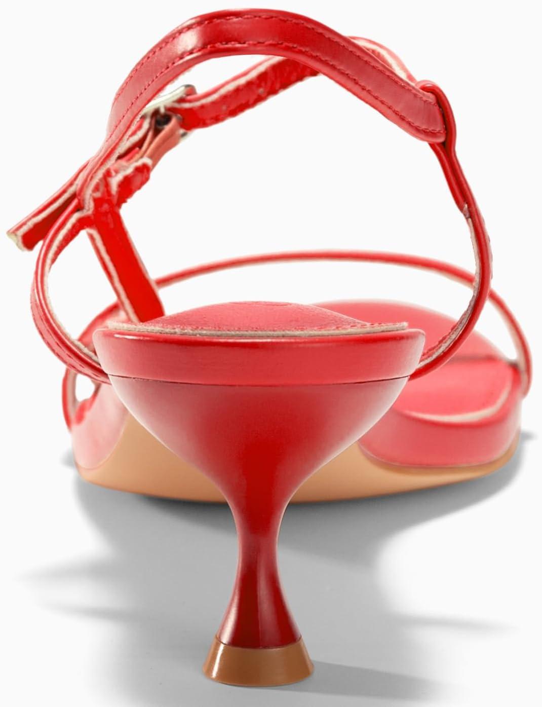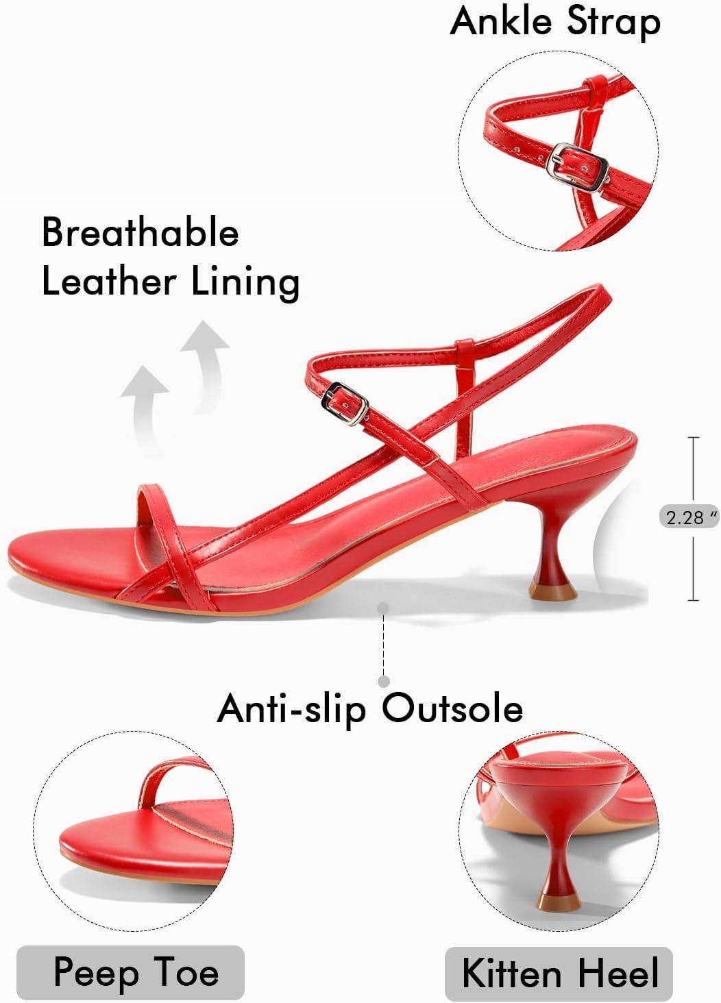 Coutgo Womens Strappy Heeled Sandals Kitten Low Heel Open Toe Ankle Strap Party Wedding Dress Shoes(Red)