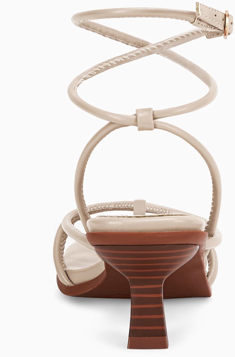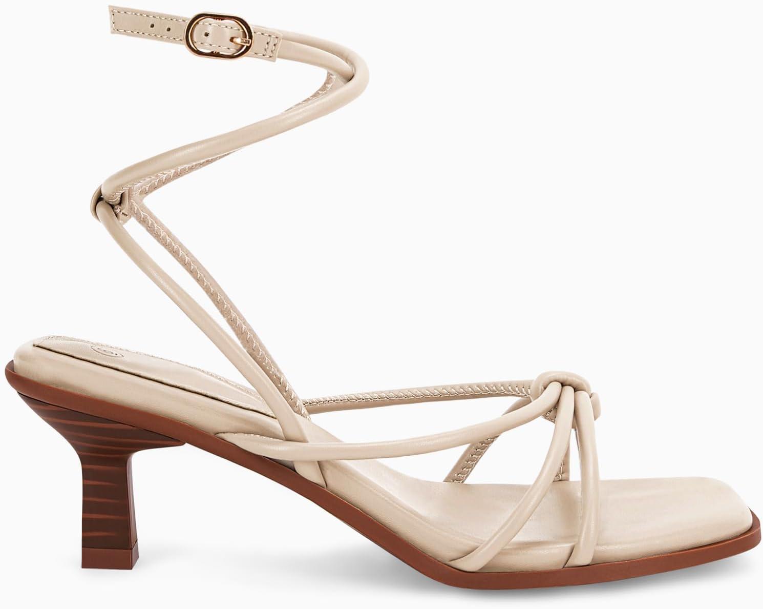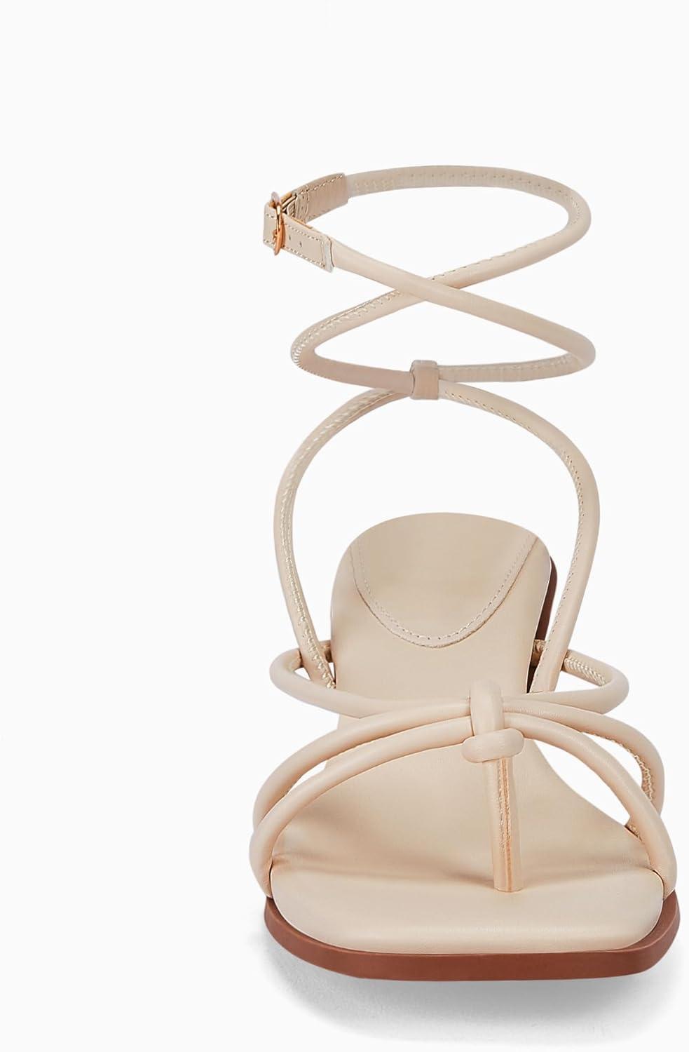 Coutgo Womens Strappy Heels Sandals Thong Gladiator Square Open Toe Low Kitten Heeled Criss Cross Ankle Strap Summer Dress Wedding Shoes(Beige)