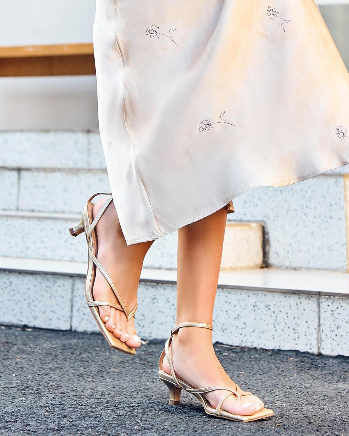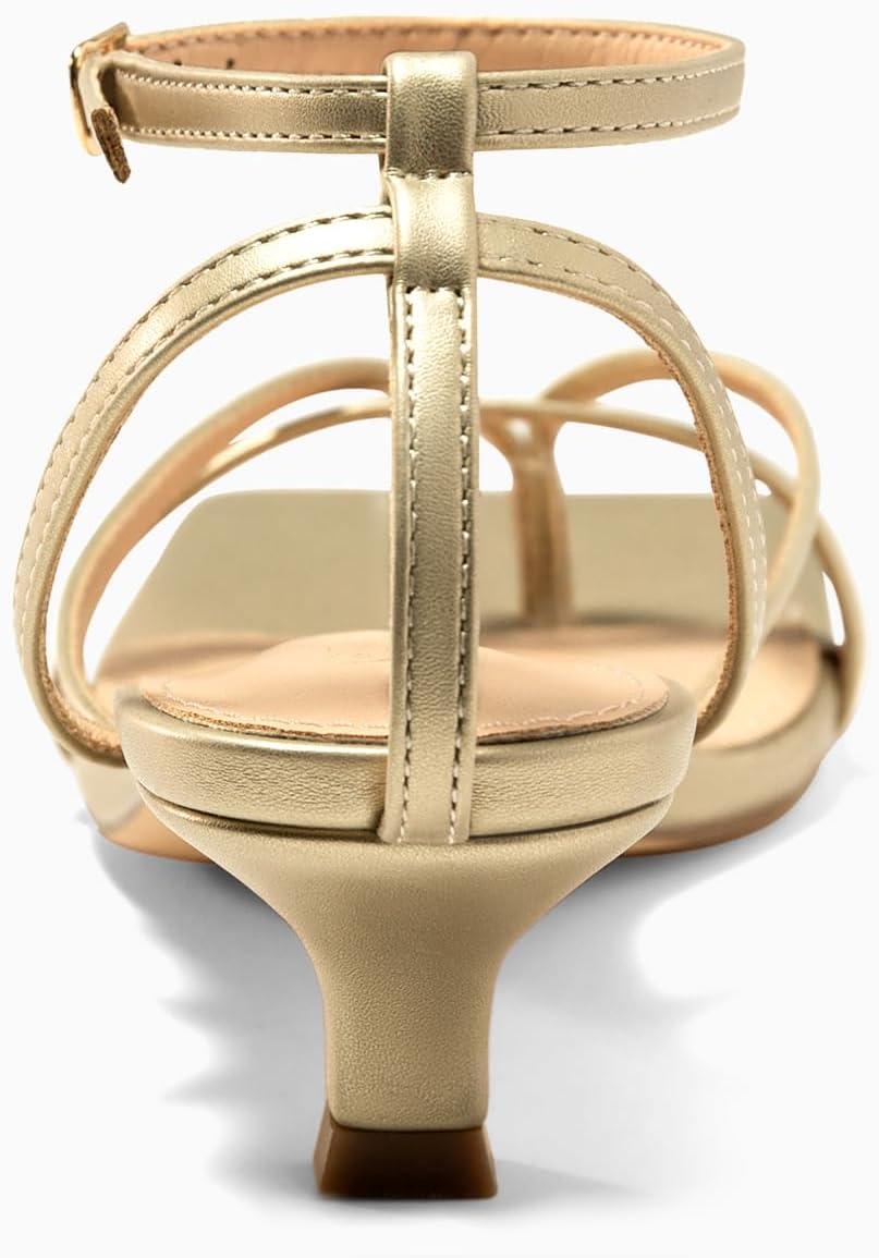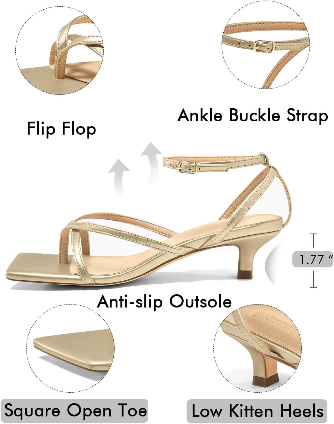 Coutgo Womens Strappy Low Kitten Heels Sandals Open Square Toe Flip Flop Summer Dress Party Shoes(Gold)