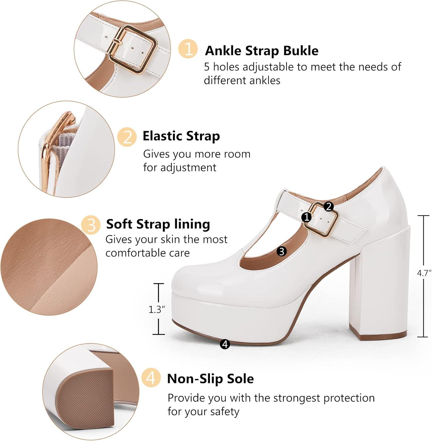 Discover the latest Coutgo Womens’ T-Strap Round Toe Chunky Platform Heels Patent Mary Jane Dress Shoes(White) from and take advantage of our limited-time introductory offer.