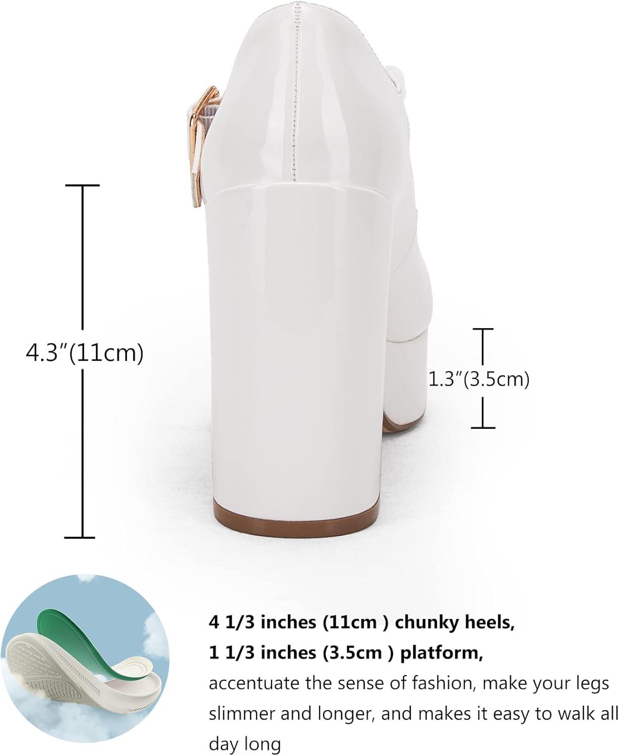 Coutgo Womens’ T-Strap Round Toe Chunky Platform Heels Patent Mary Jane Dress Shoes(White)