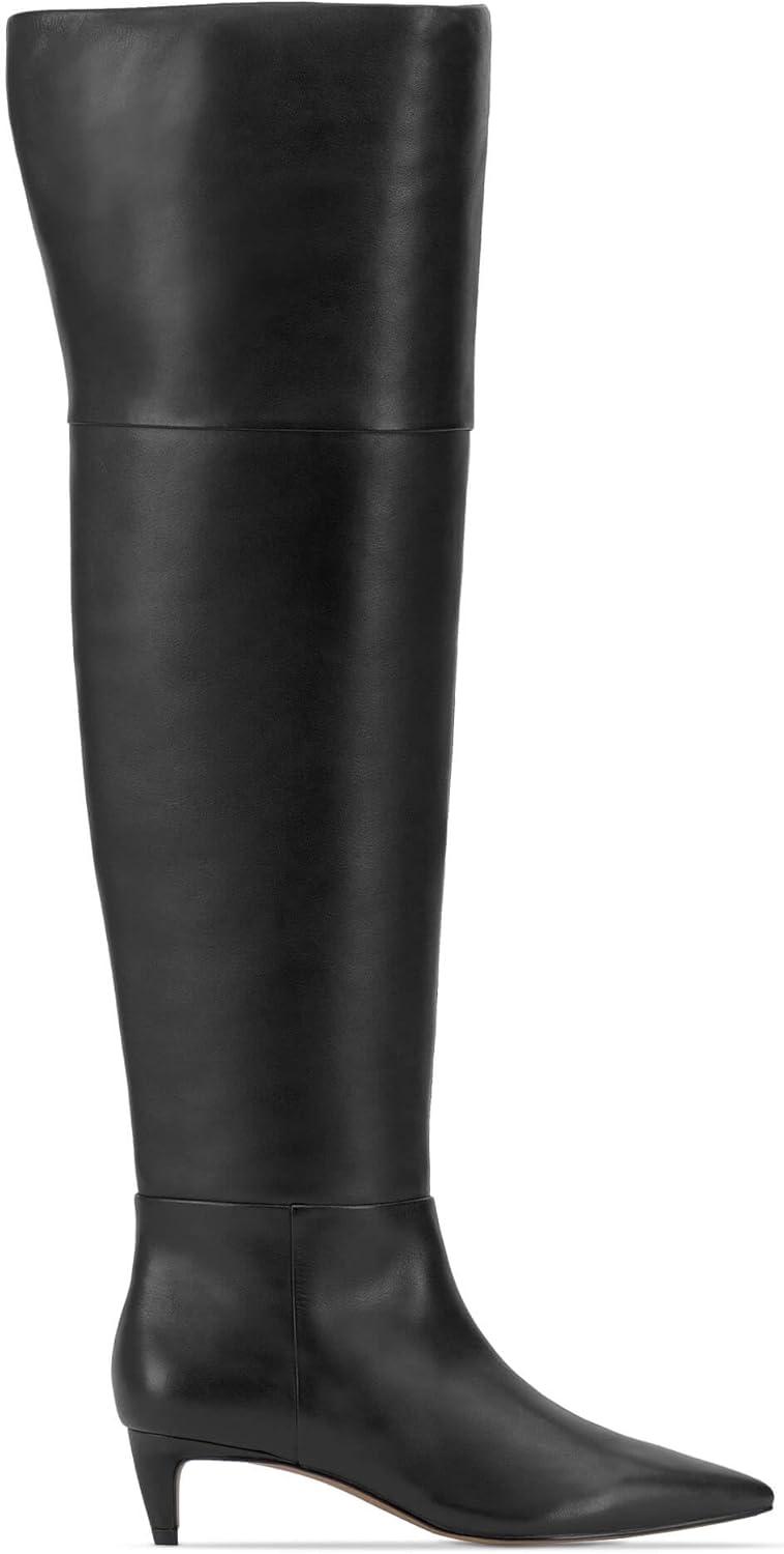 Coutgo Women’s Thigh High Boots Over The Knee Kitten Heel Pointed Toe Long Boots Fall Shoes(Black Pu)