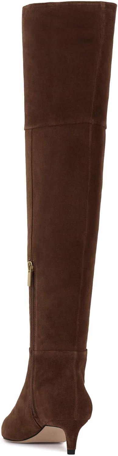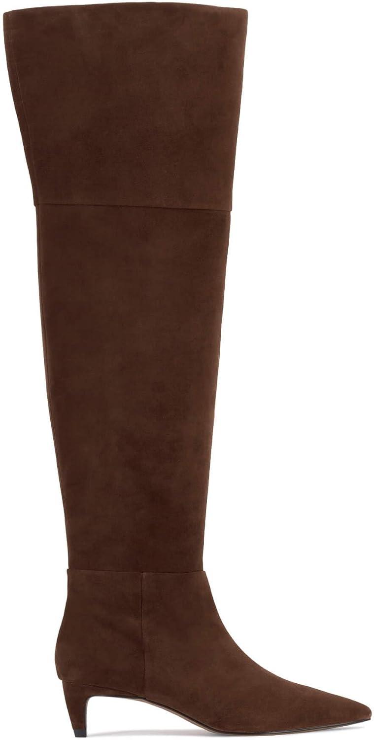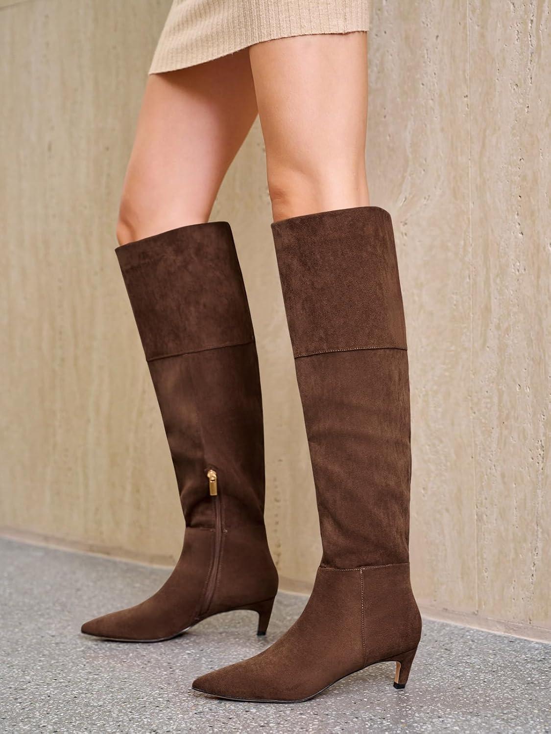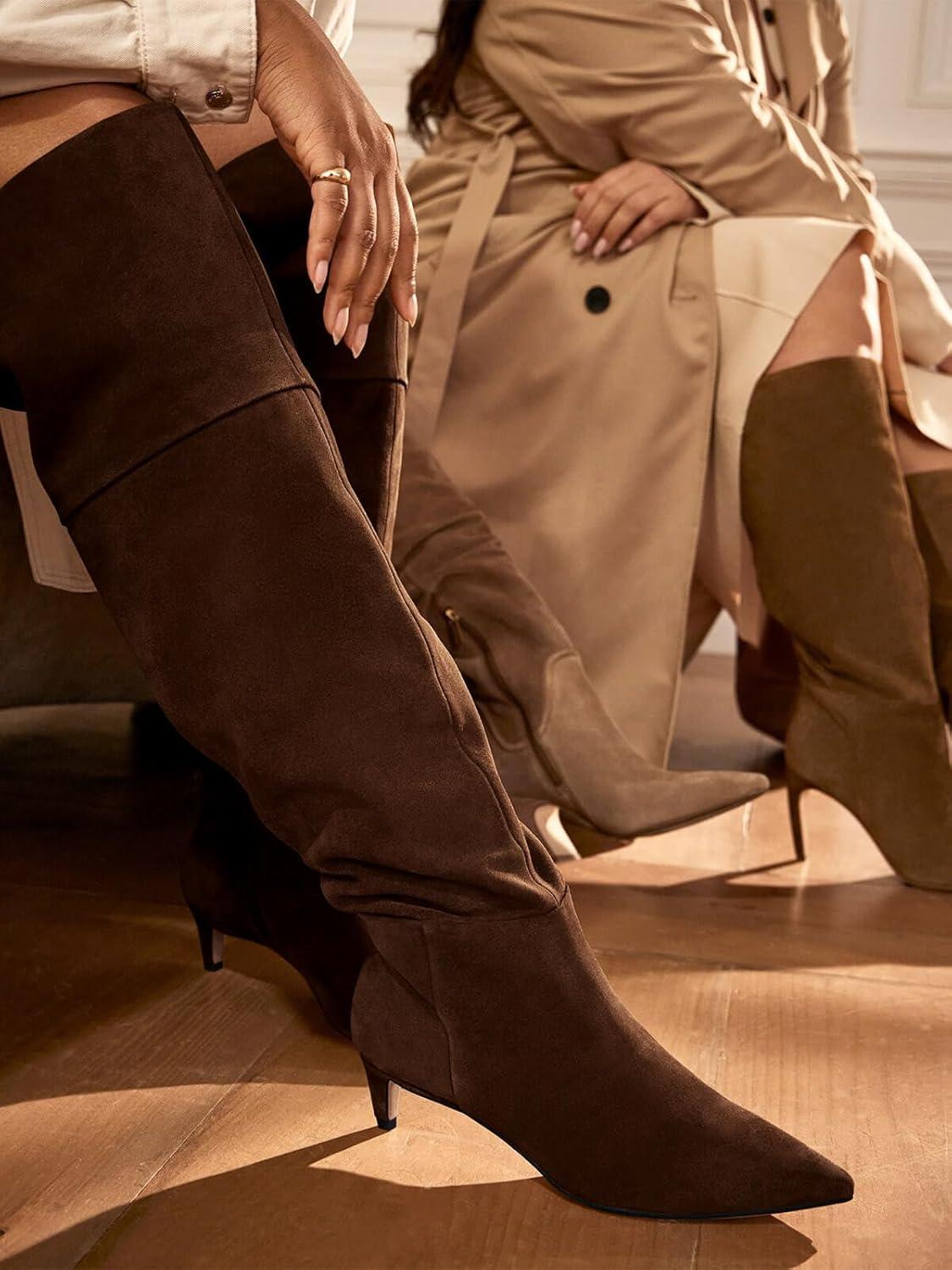 Coutgo Women’s Thigh High Boots Over The Knee Kitten Heel Pointed Toe Long Boots Fall Shoes(Chocolate Suede)