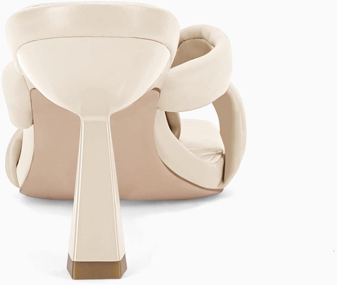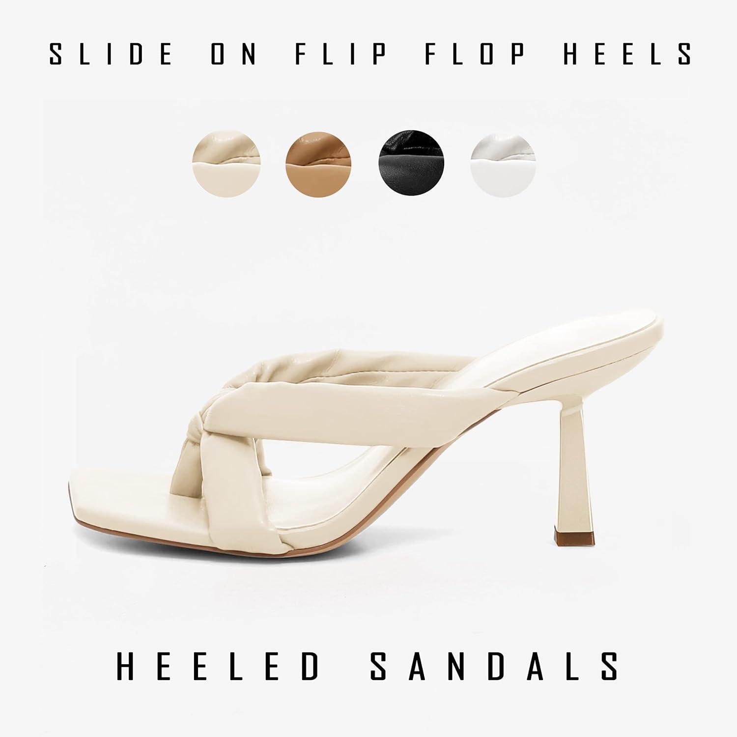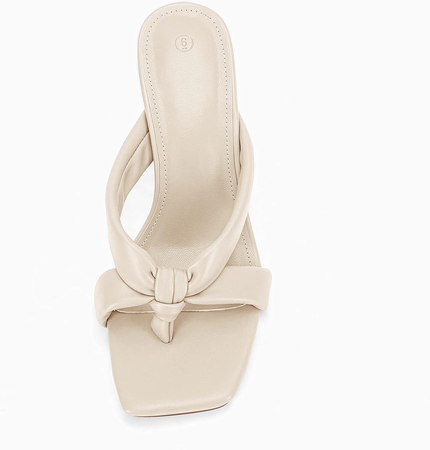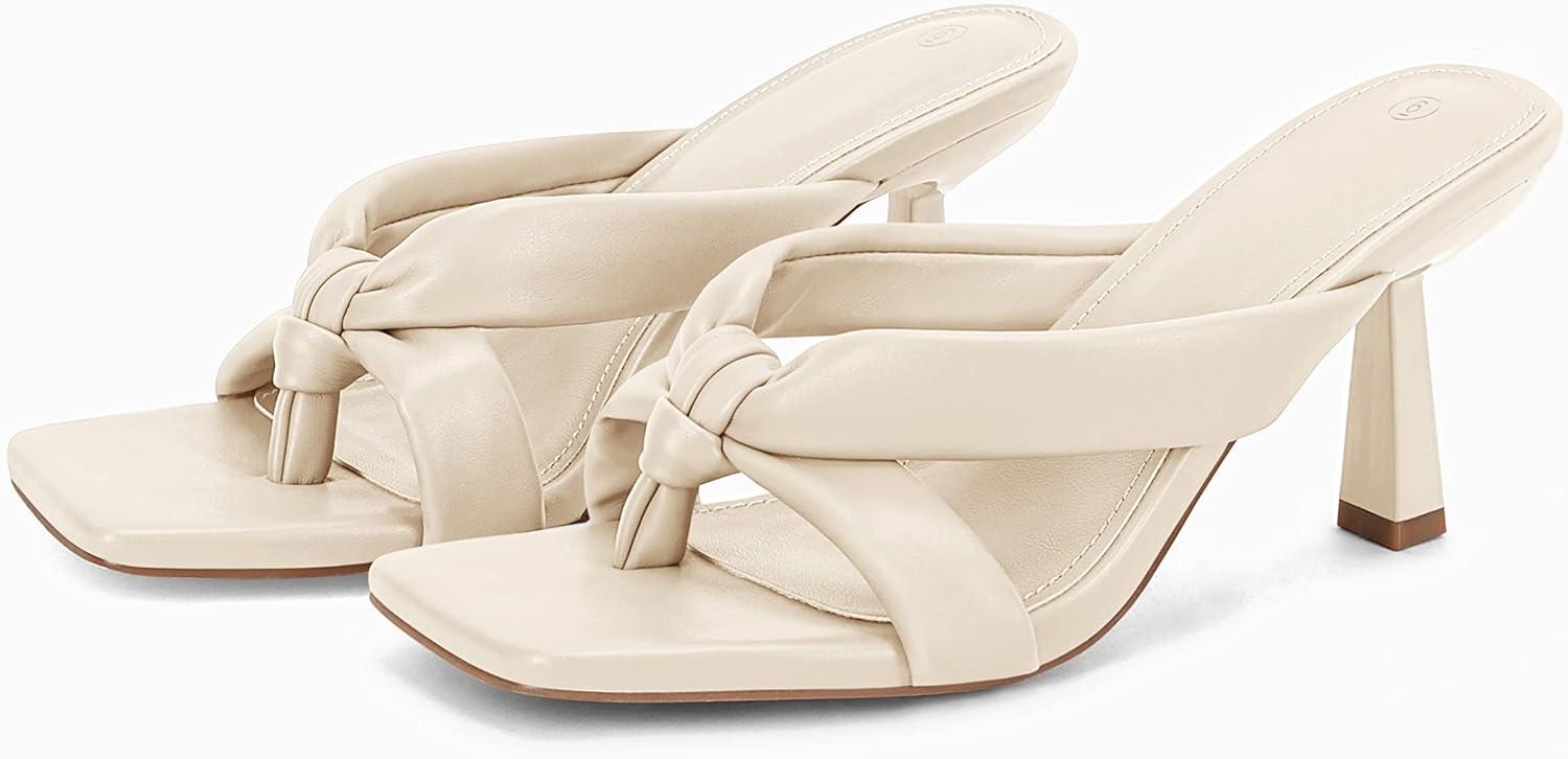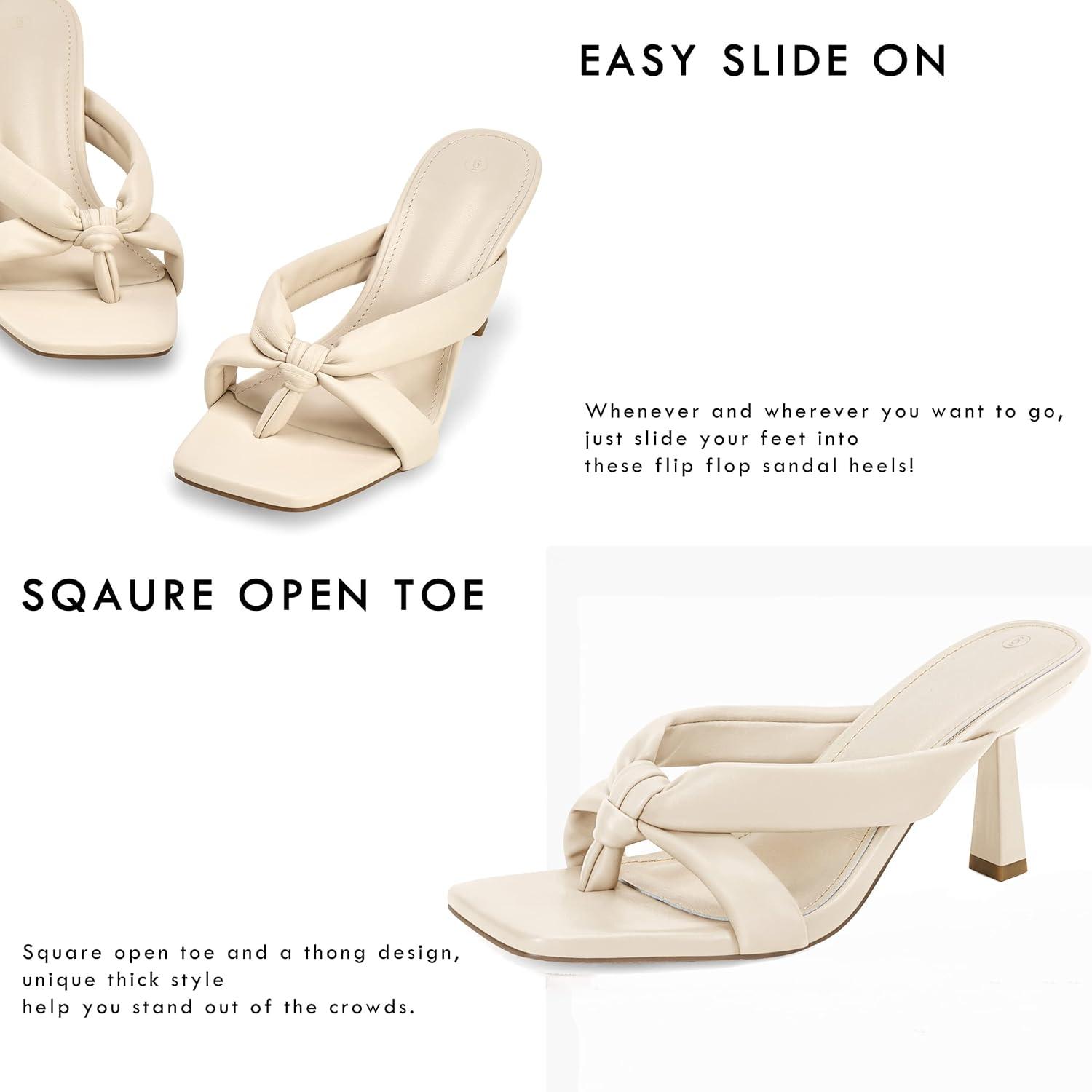 Coutgo Womens Thong Heels Mules Square Toe Heeled Flip Flops Mule Sexy Stiletto Dress Party Sandals(Nude)