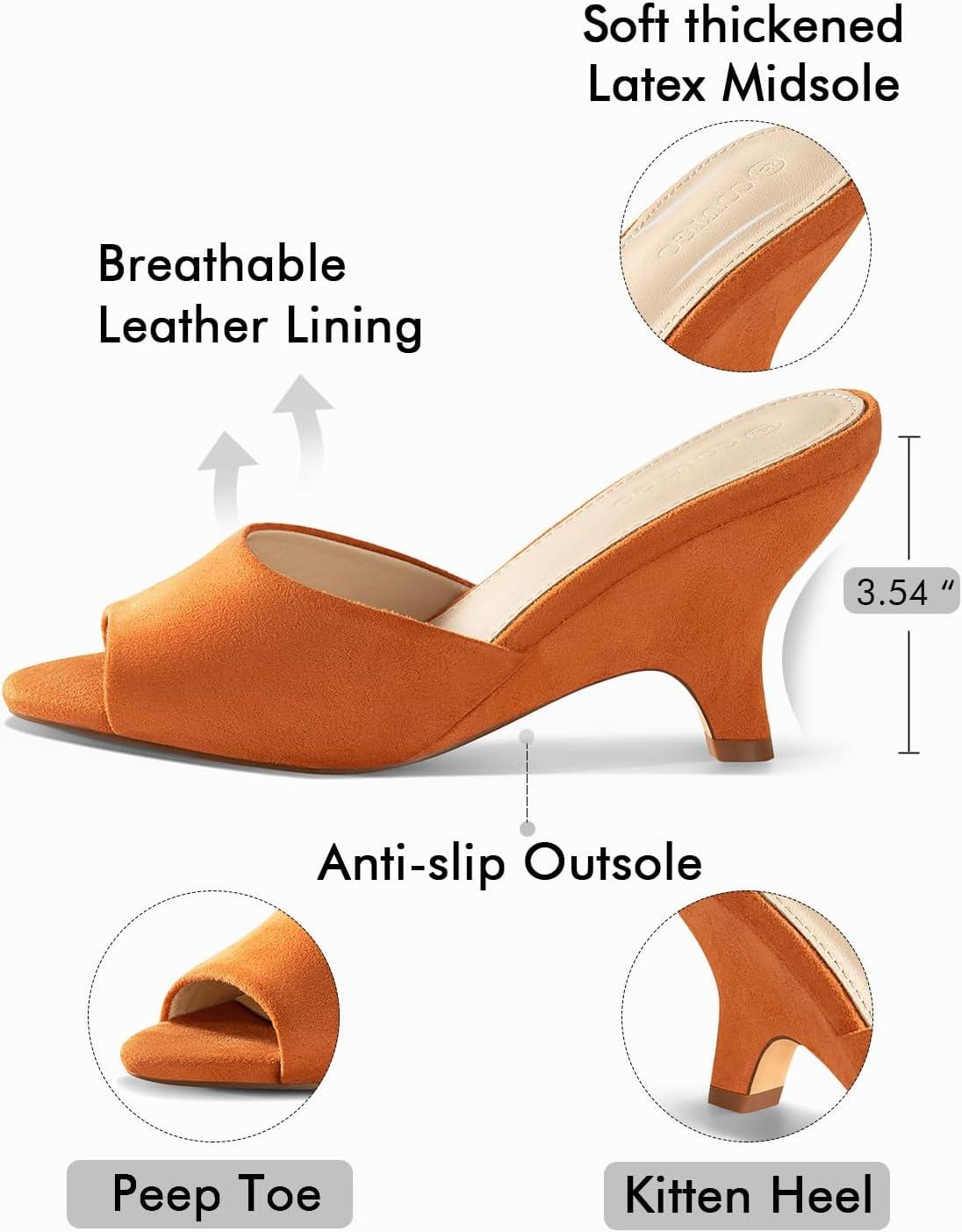 Coutgo Womens Wedge Heels Sandals Pointed Open Toe Slide Sandals Slip On Backless Summer Dress Shoes(Caramel)