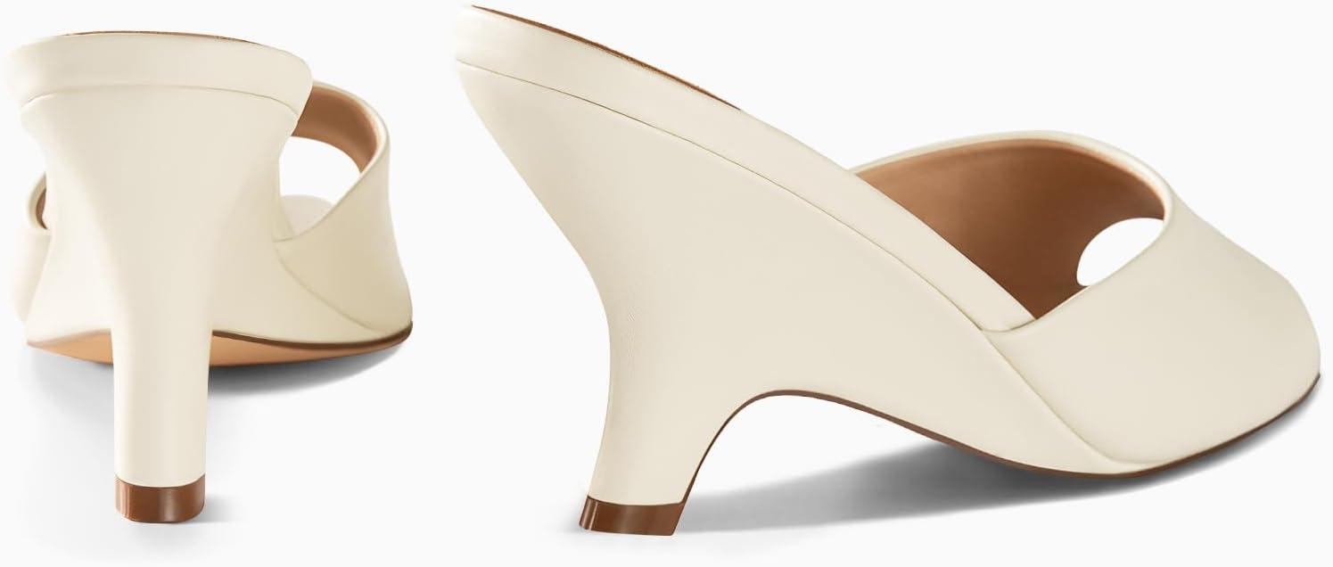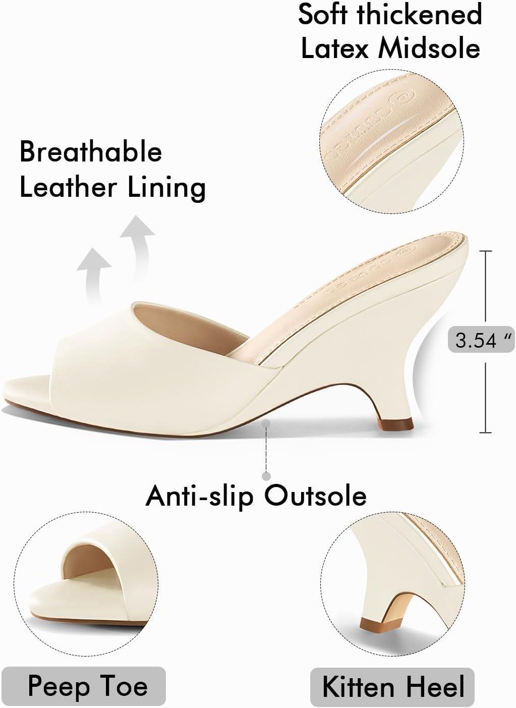 Coutgo Womens Wedge Heels Sandals Pointed Open Toe Slide Sandals Slip On Backless Summer Dress Shoes(Creamy White)